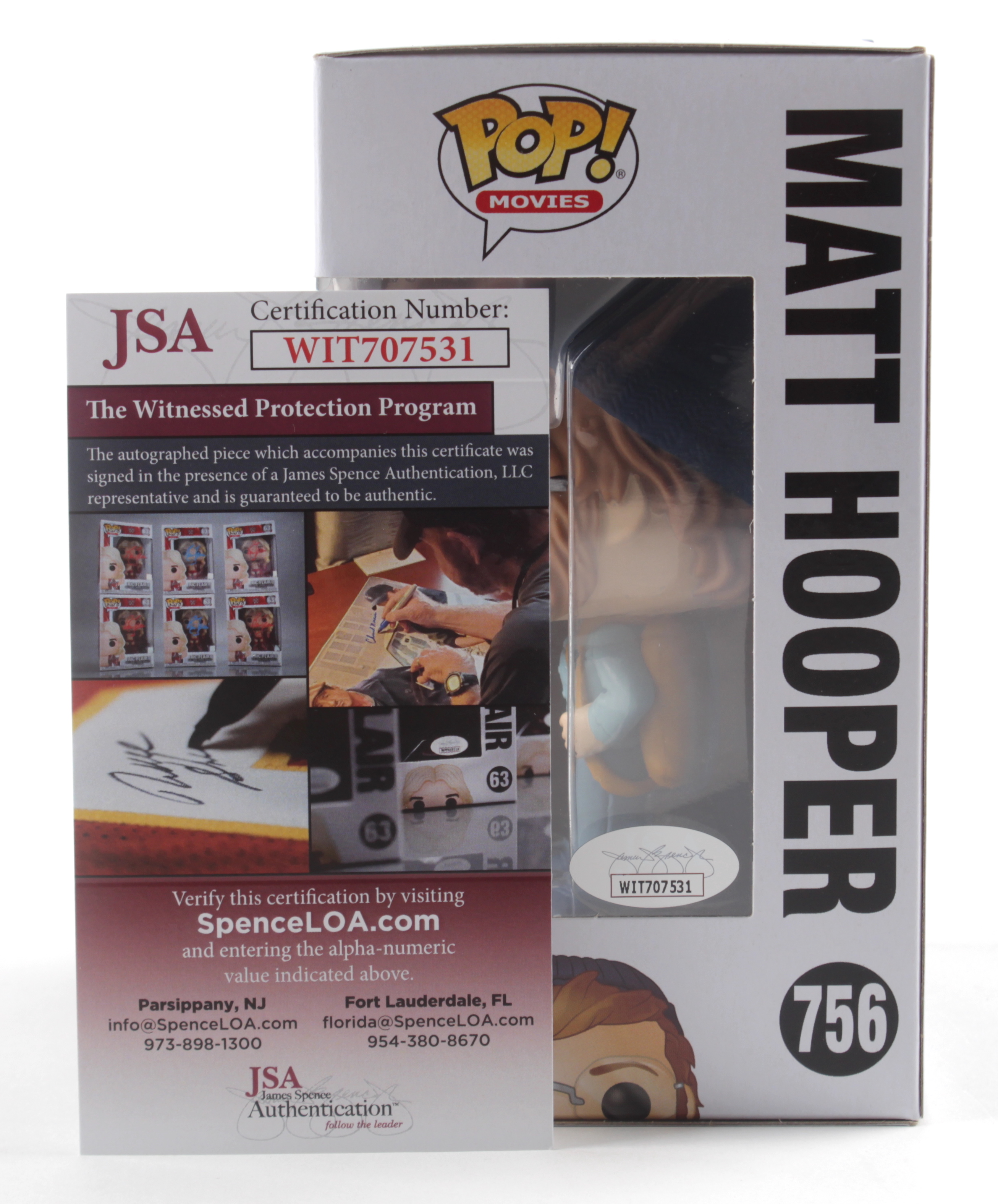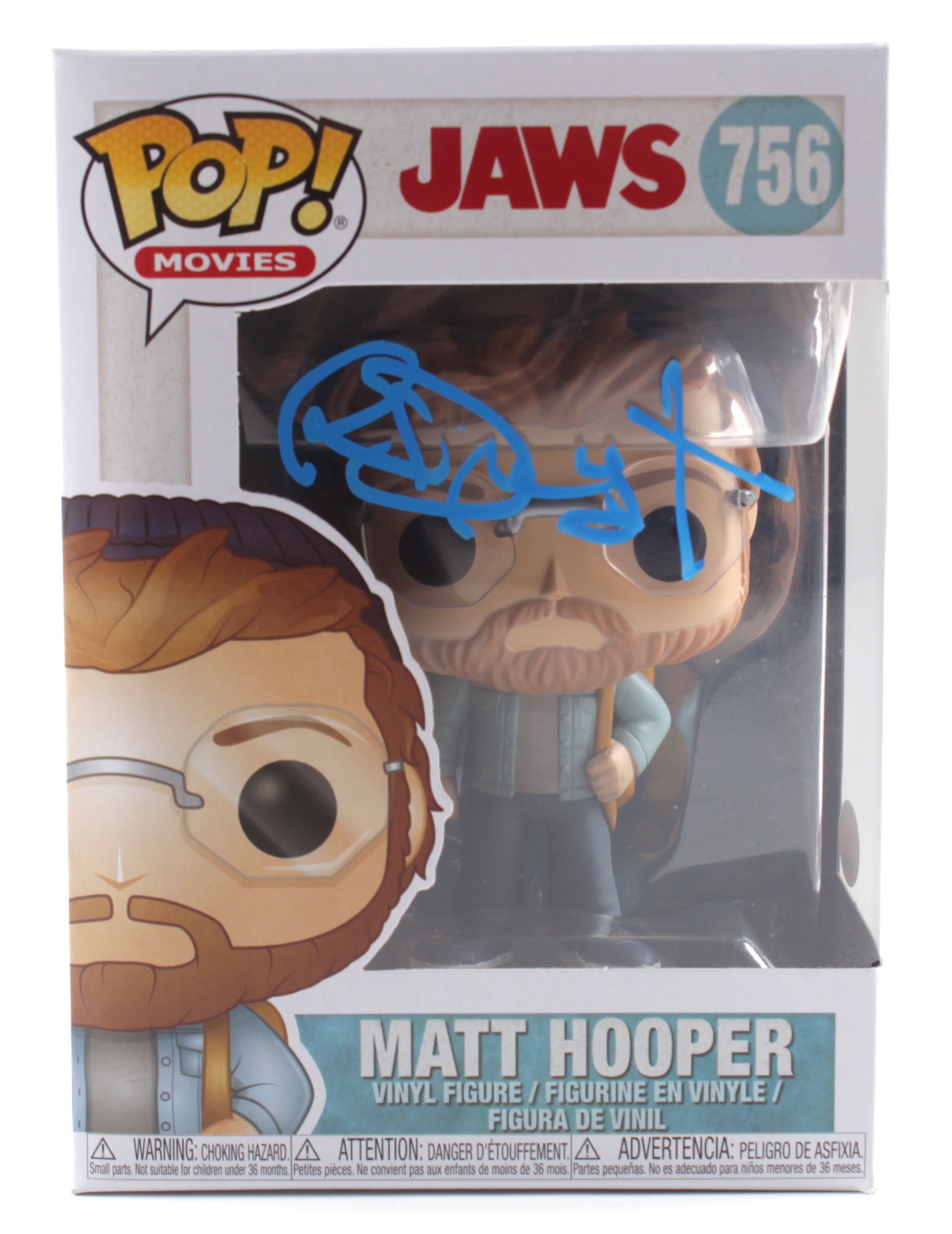 Funko Pop! vinyl figure measures approximately 4" tall and the packaging has been hand-signed by Richard Dreyfuss (Matt Hooper).