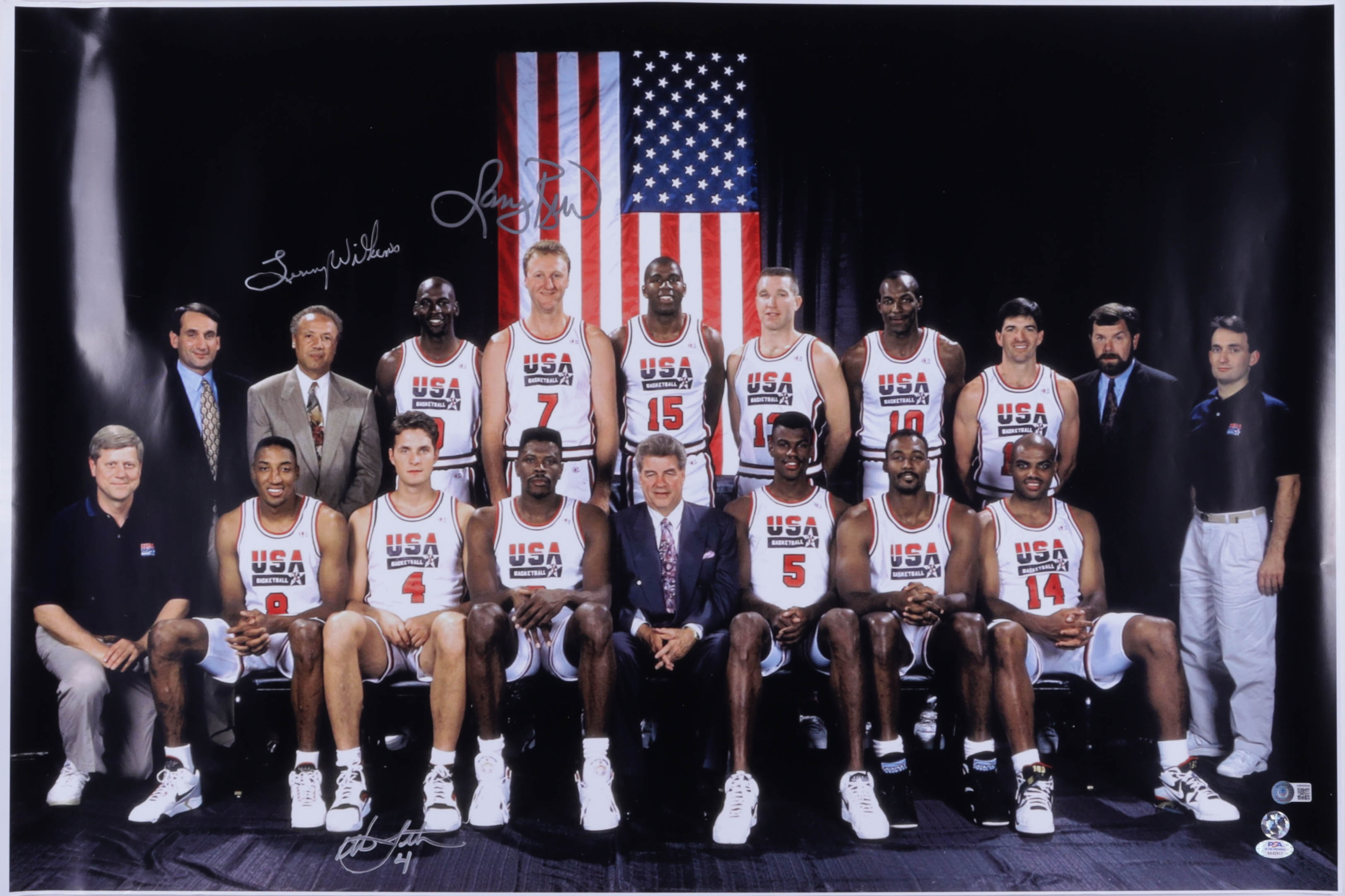 Larry Bird, Christian Laettner & Lenny Wilkens Signed Team USA 24x36 Poster (Beckett LOA)