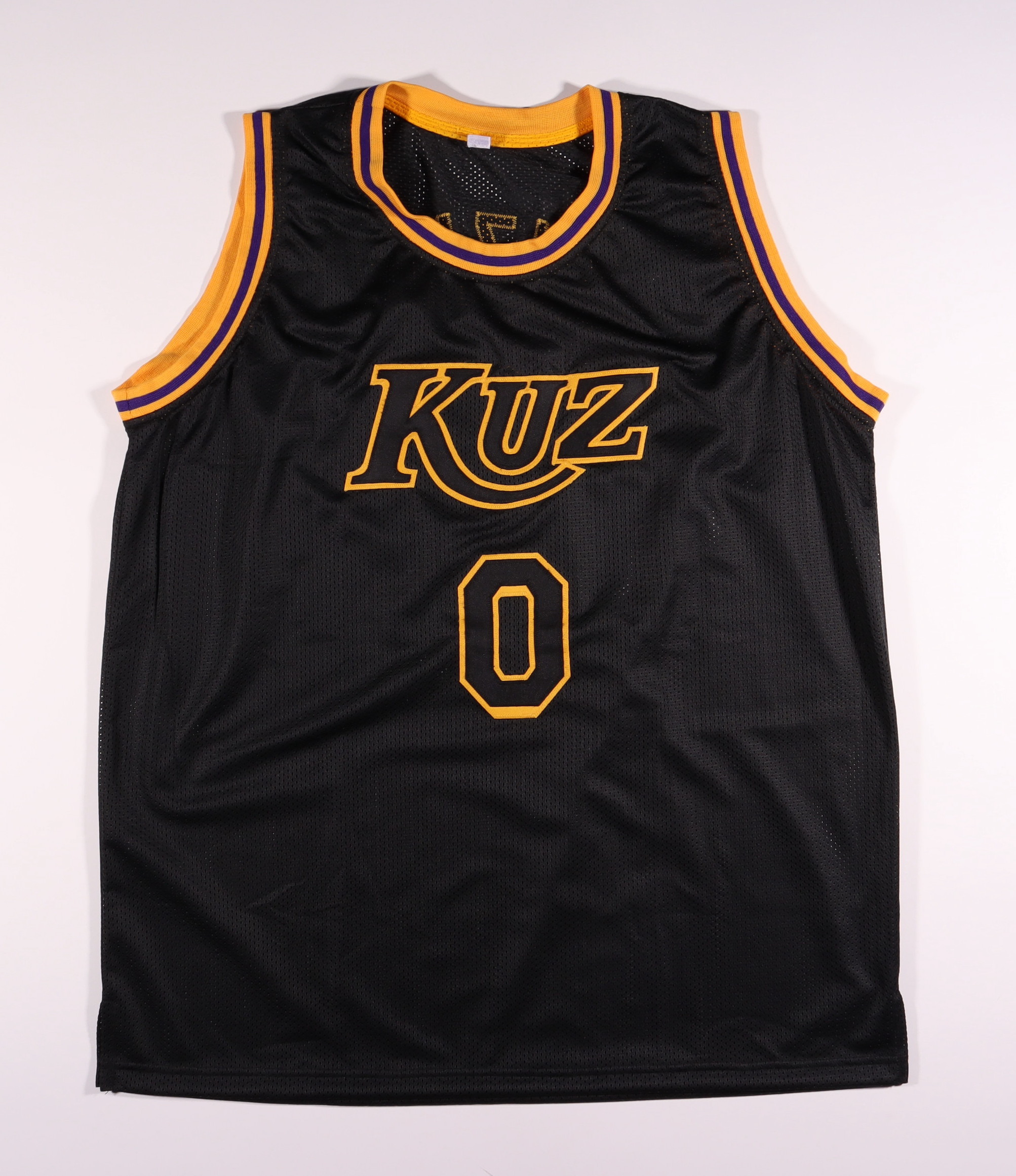 Custom on-court style jersey. Everything is sewn on, size XL. Hand-signed by Kyle Kuzma.