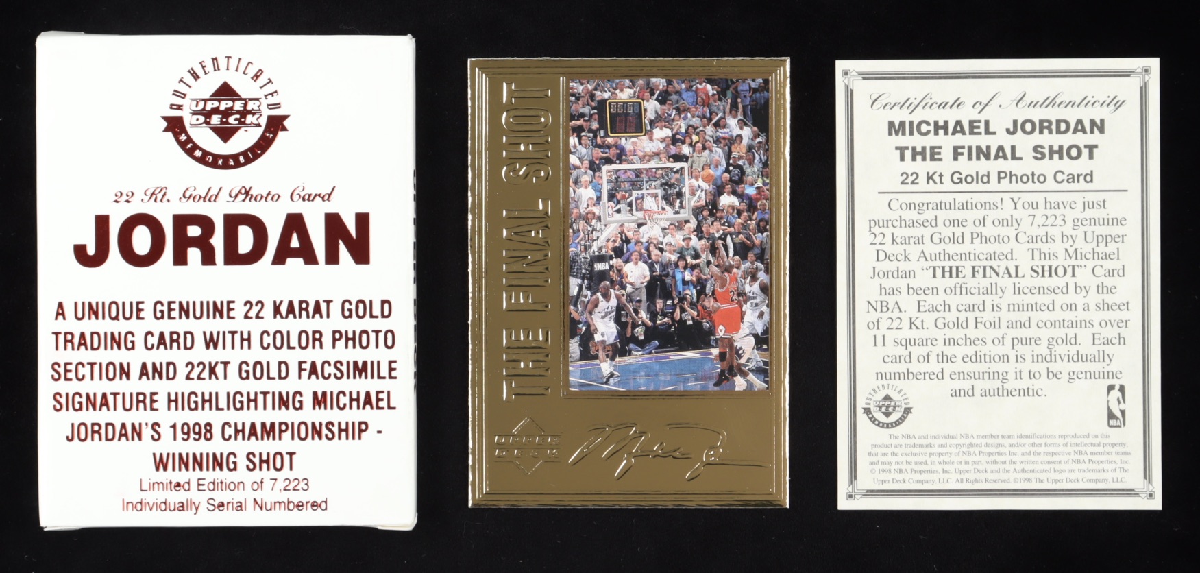 Michael Jordan 1998 LE 22Kt Gold Upper Deck "The Final Shot" Basketball Photo Card