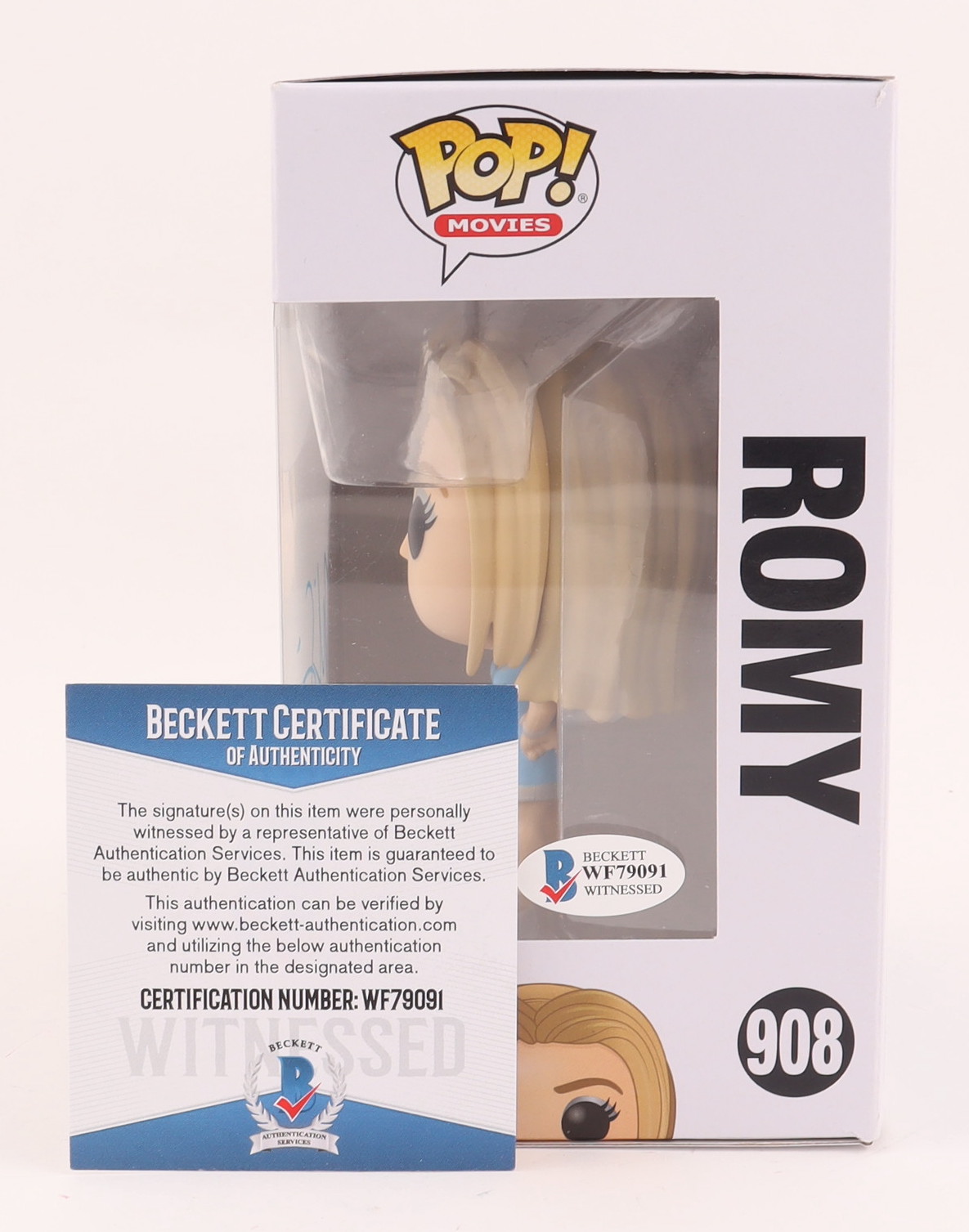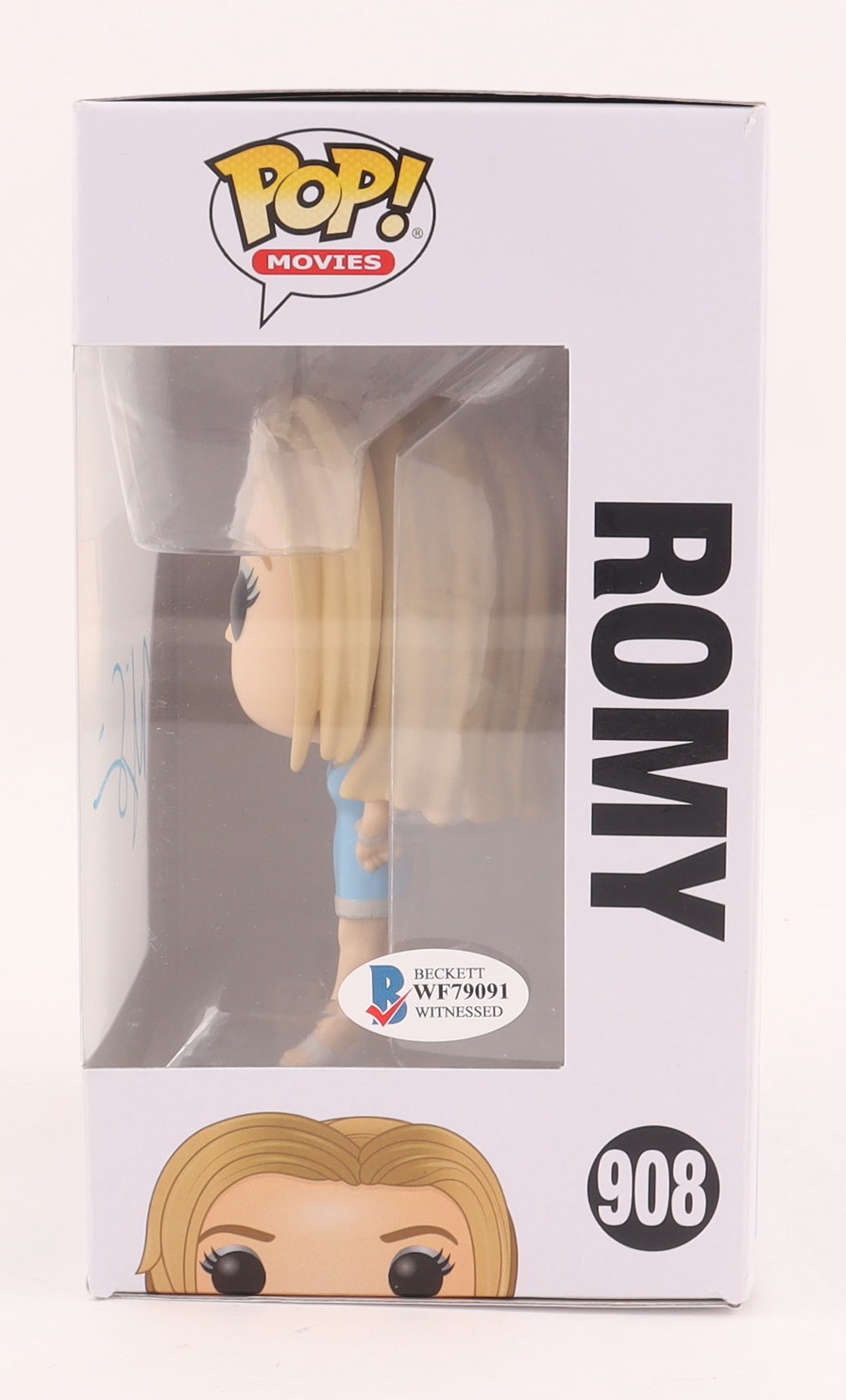 Funko Pop! figure measures approximately 4" tall. Hand-signed on the packaging by Mira Sorvino (Romy White).