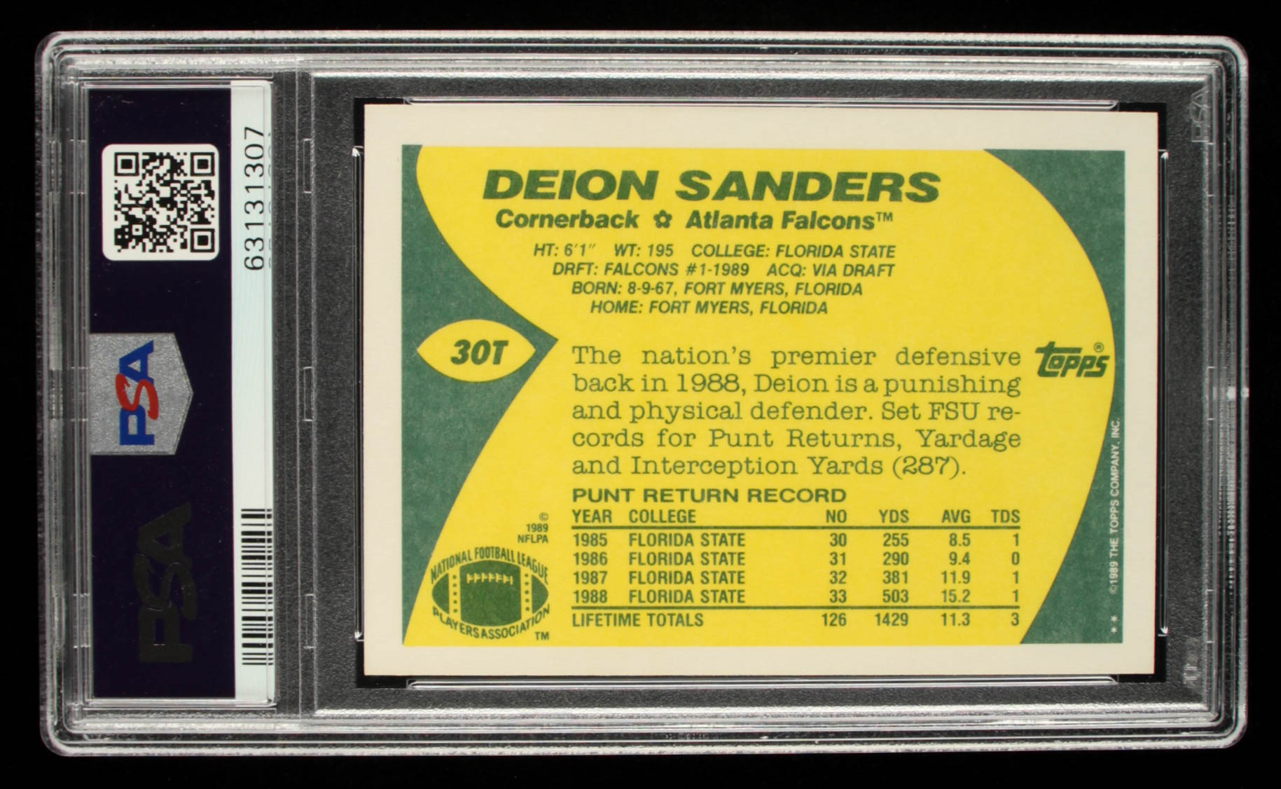 Deion Sanders 1989 Topps Traded #30T RC (PSA 10)