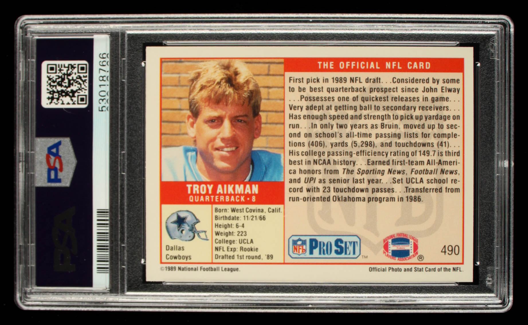 Troy Aikman 1989 Pro Set #490 RC (PSA 9)