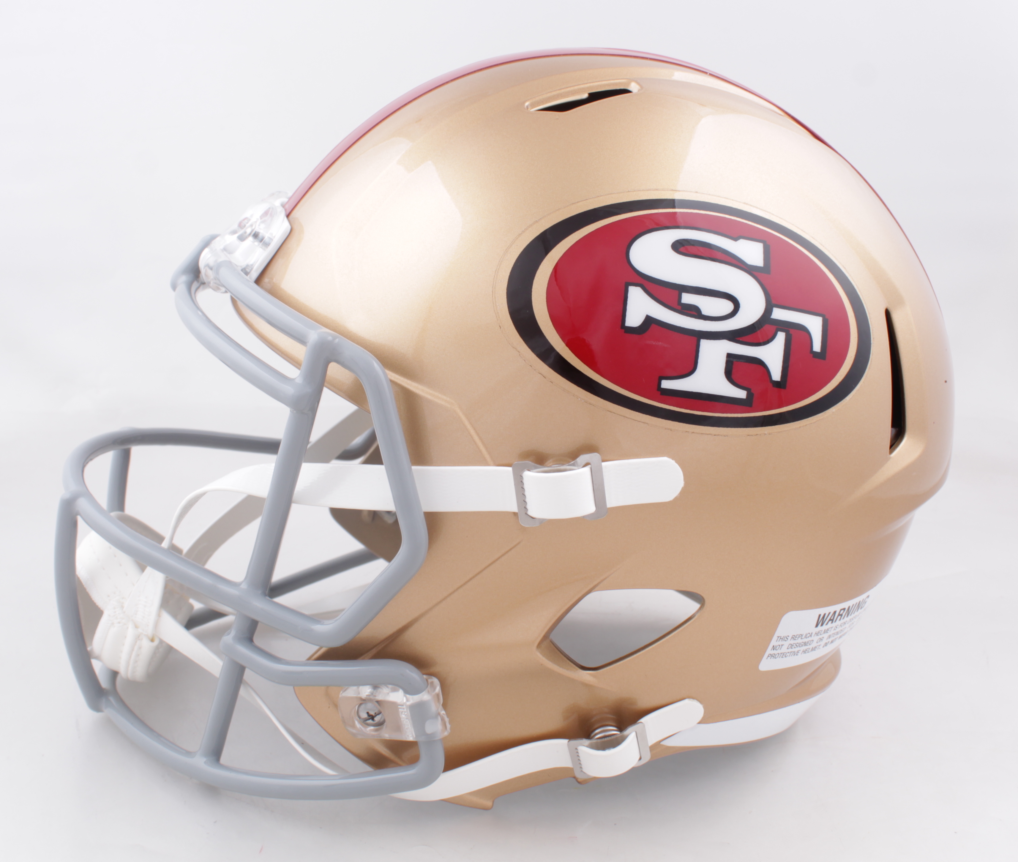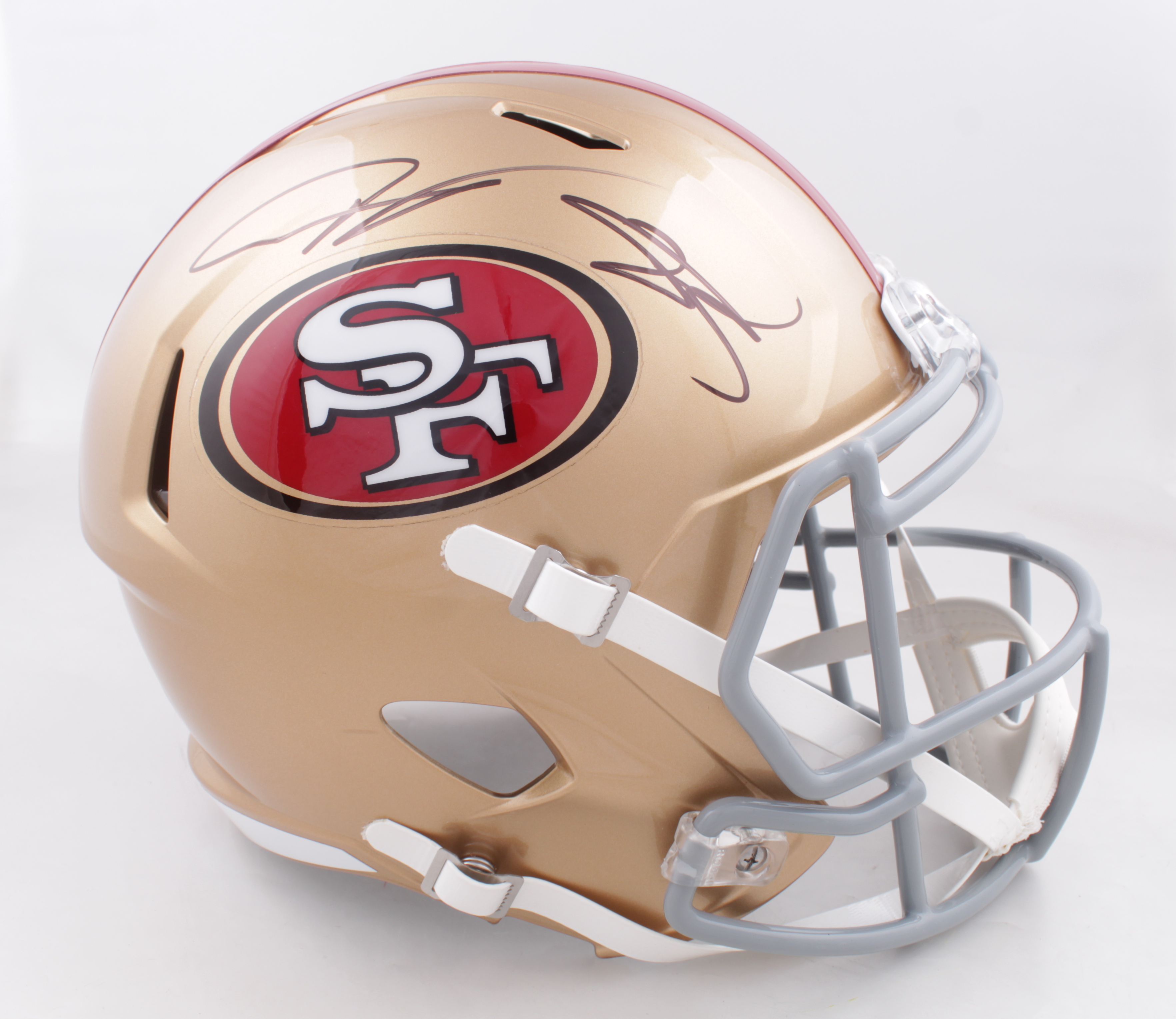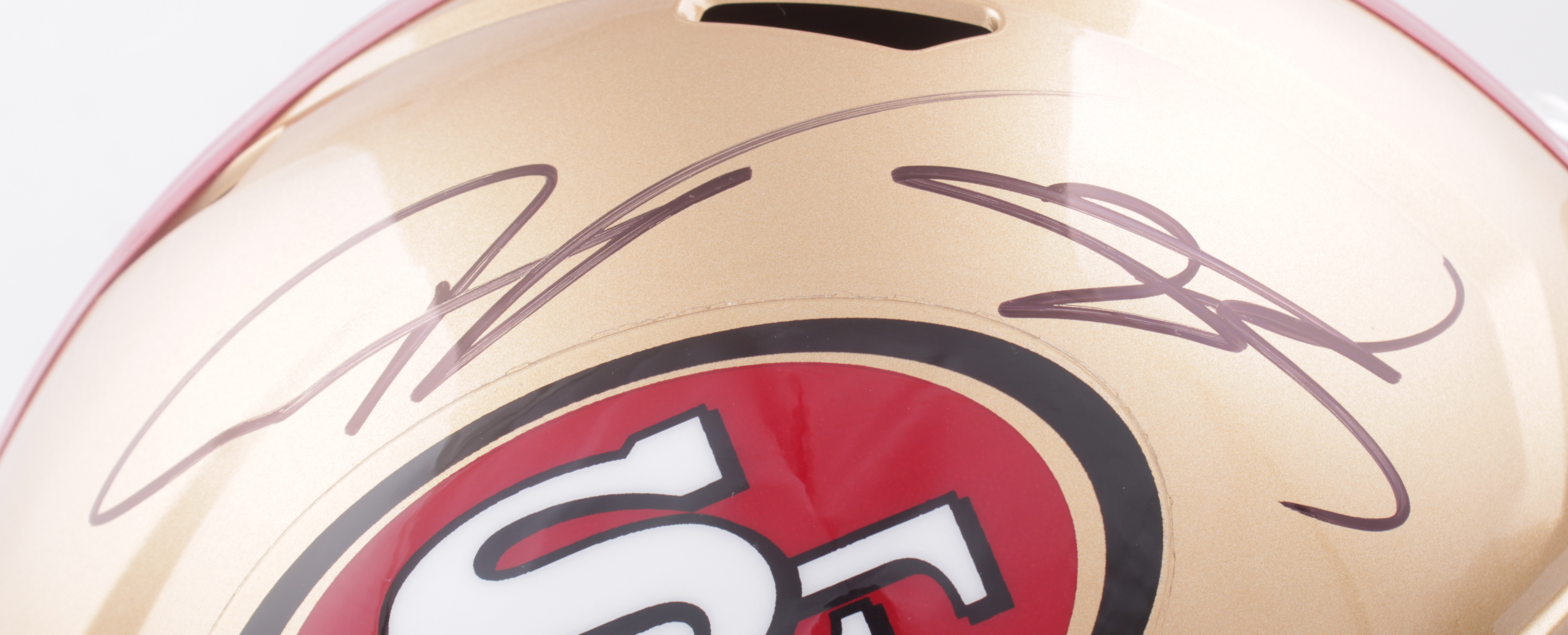 Riddell San Francisco 49ers full-size replica speed helmet. Hand-signed by Vernon Davis. Please note, there are some signs of scuffing and staining towards the rear of the helmet.