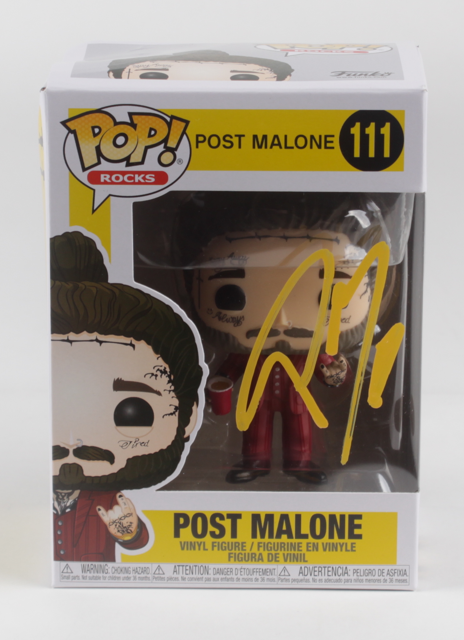Funko Pop! vinyl figure measures approximately 4" tall and the packaging has been hand-signed by Post Malone. Please note, packaging shows wear.