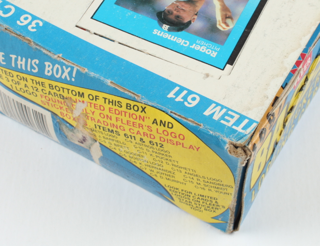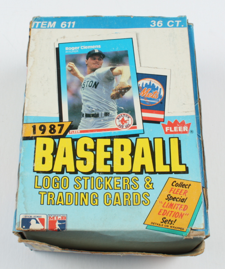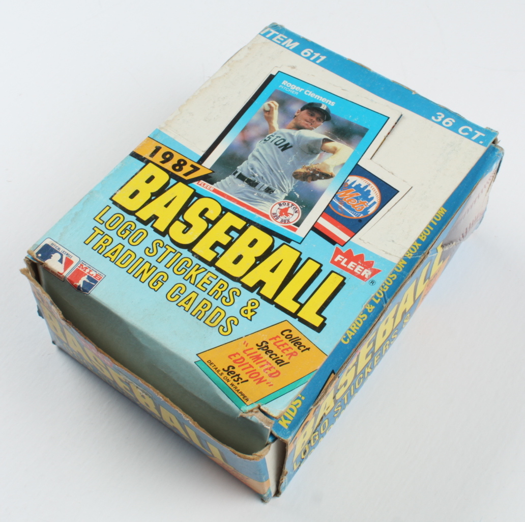 1987 Fleer Baseball Boxes with (36) Wax Packs. Each pack includes (15) trading cards and (3) puzzle pieces. This 1987 Fleer baseball card set consists of 660 standard size cards. The subsets for the 1987 Fleer baseball cards are specials (625-643), Rookie Pairs 644-653), and checklists (654-660). The cards are organized by the order the teams finished in 1986 and then alphabetically by player last name. The rookies included in this set are Barry Bonds, Bobby Bonilla, Will Clark, Chuck Finley, Bo Jackson, Wally Joyner, John Kruk, Barry Larkin and Devon White.