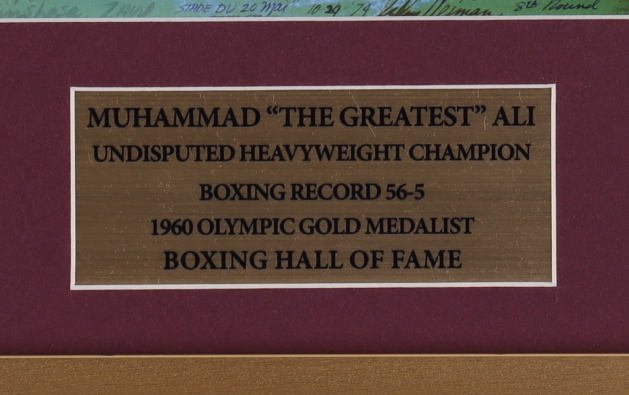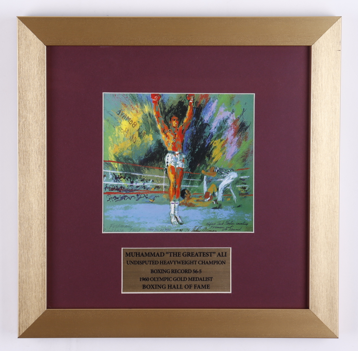 Custom frame measures 13" x 13" in size and features a LeRoy Neiman print of "Muhammad Ali". Please note the frame has some scratches.