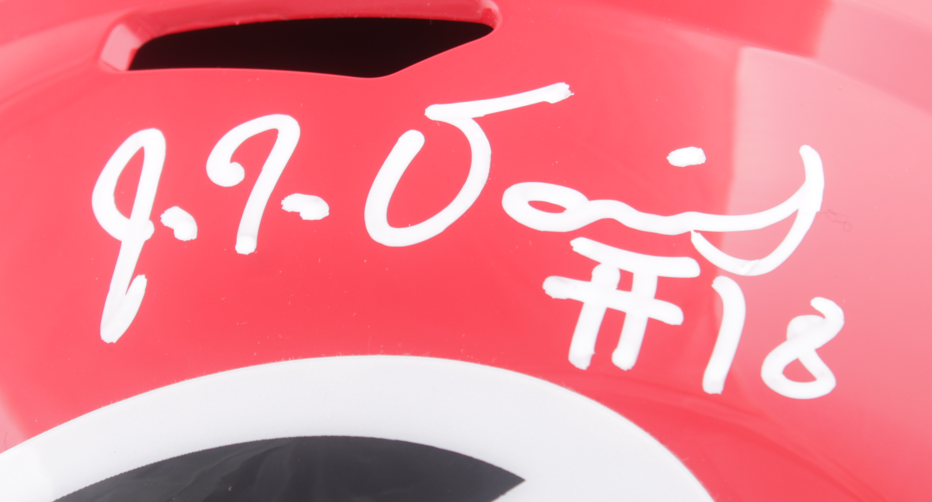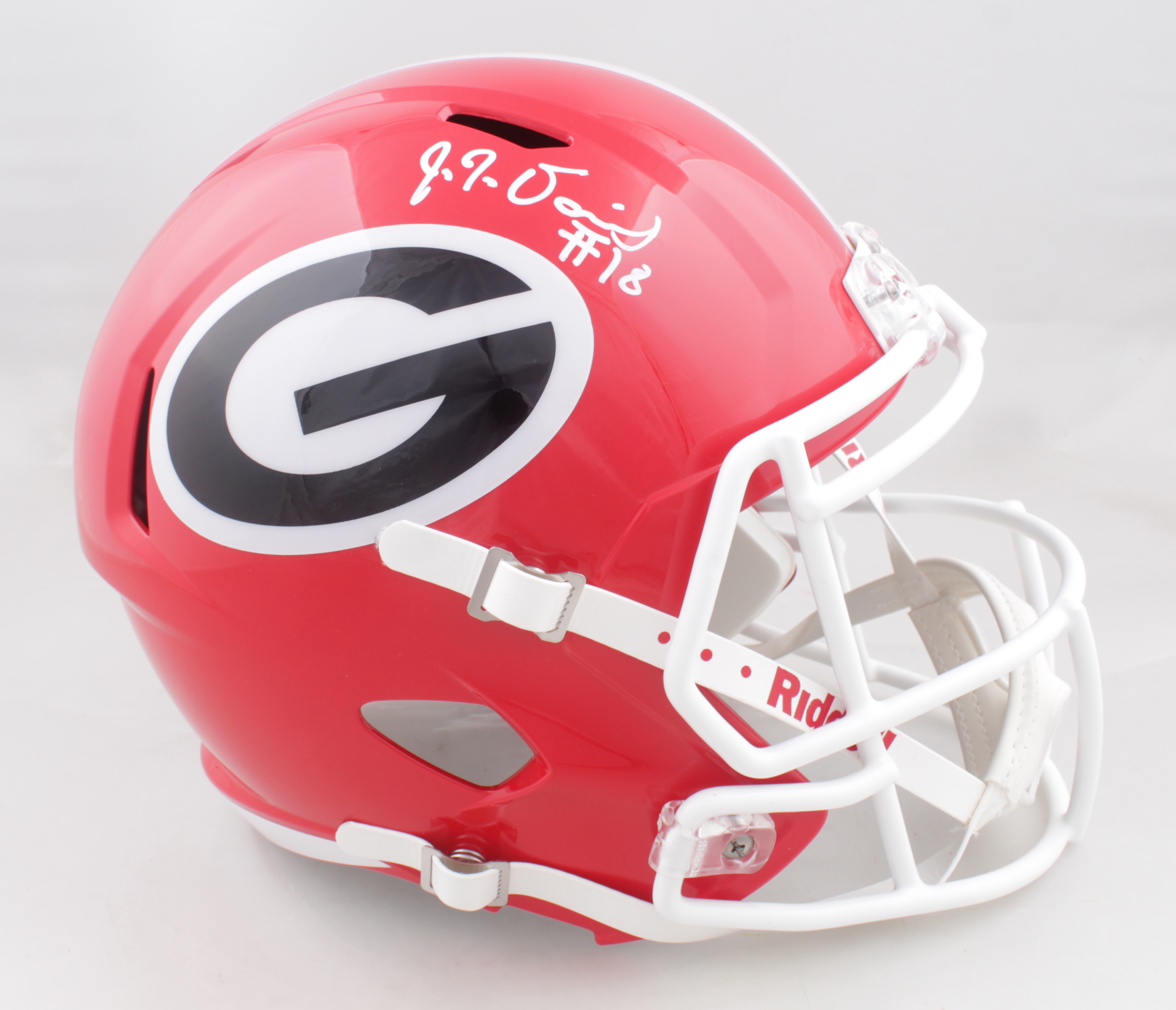 Riddell Georgia Bulldogs full-size replica speed helmet. Hand-signed by JT Daniels. Please note that the helmet has a small imperfection - see images for details regarding condition.