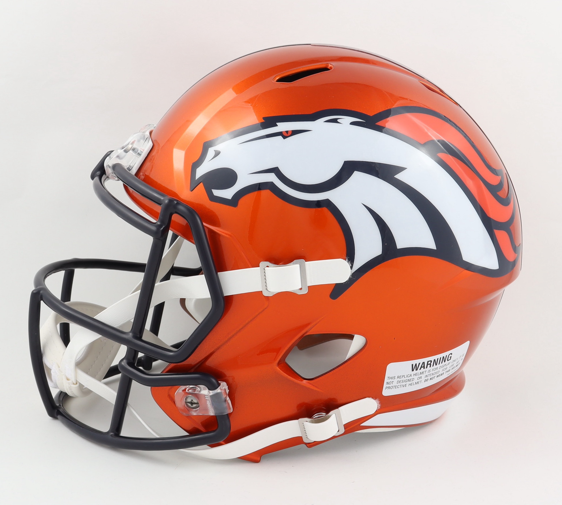 Riddell Denver Broncos Full-Size Replica Flash Alternate Speed Helmet. Hand-signed by Noah Fant.