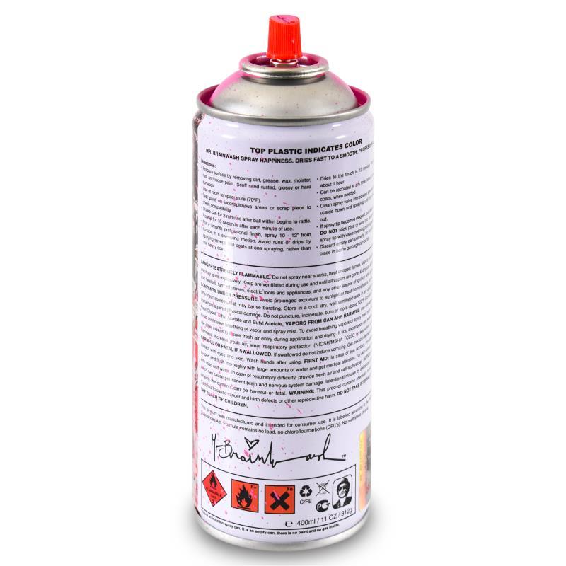 "Smile - Full (Pink)" is a limited edition hand painted spray can by Mr Brainwash, numbered 125/200 and bearing the thumbprint of the artist. This piece is from Mr Brainwash's 2020 Classic Spray Can Collection. Measures approx. 2.5" x 7.5".