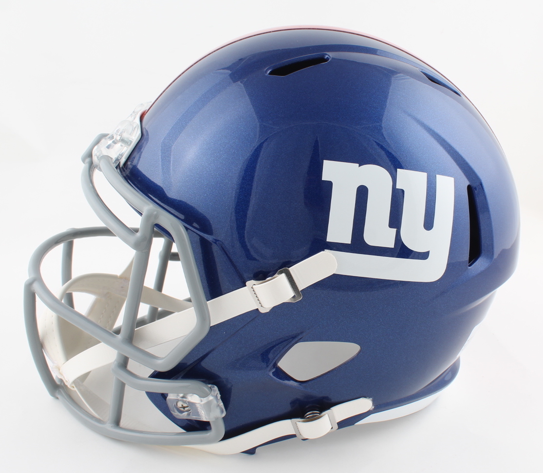 Riddell New York Giants full-size replica speed helmet. Hand-signed by Daniel Jones. Please see images for details regarding condition.
