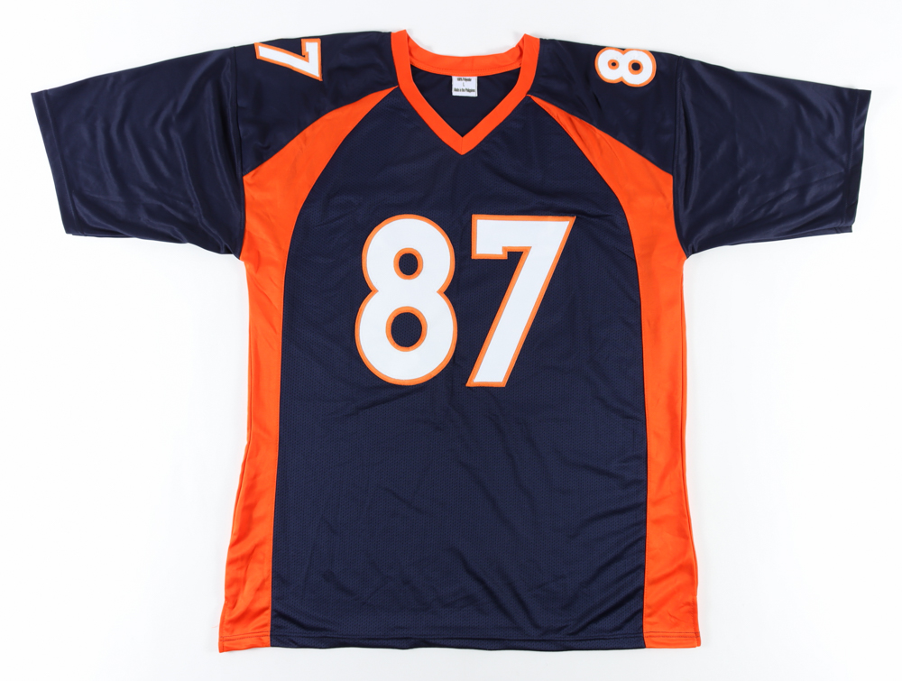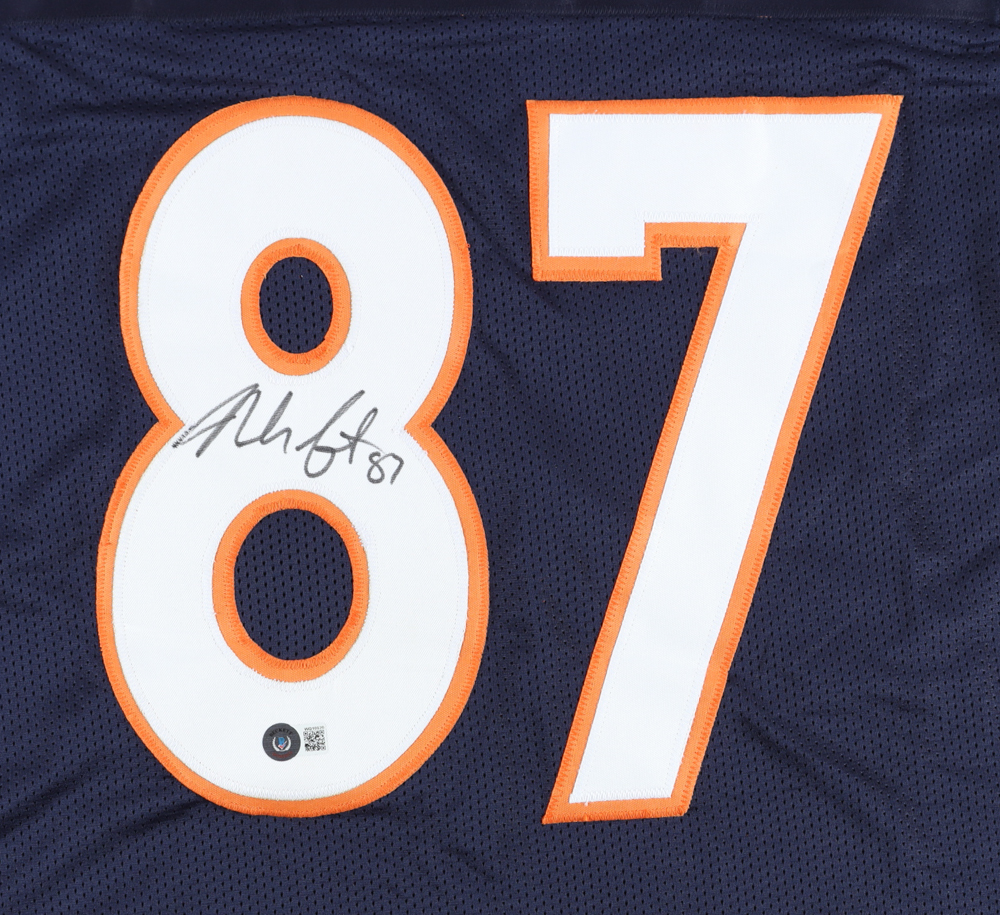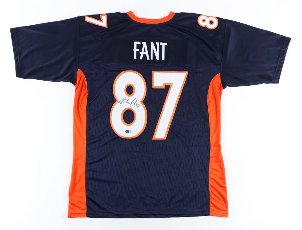 Custom on-field style jersey. Everything is sewn on, size XL. Hand-signed by Noah Fant.