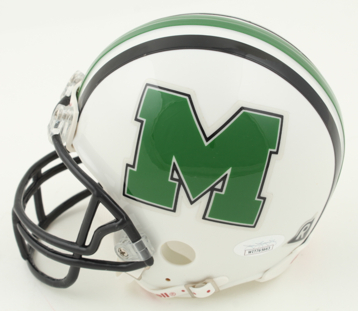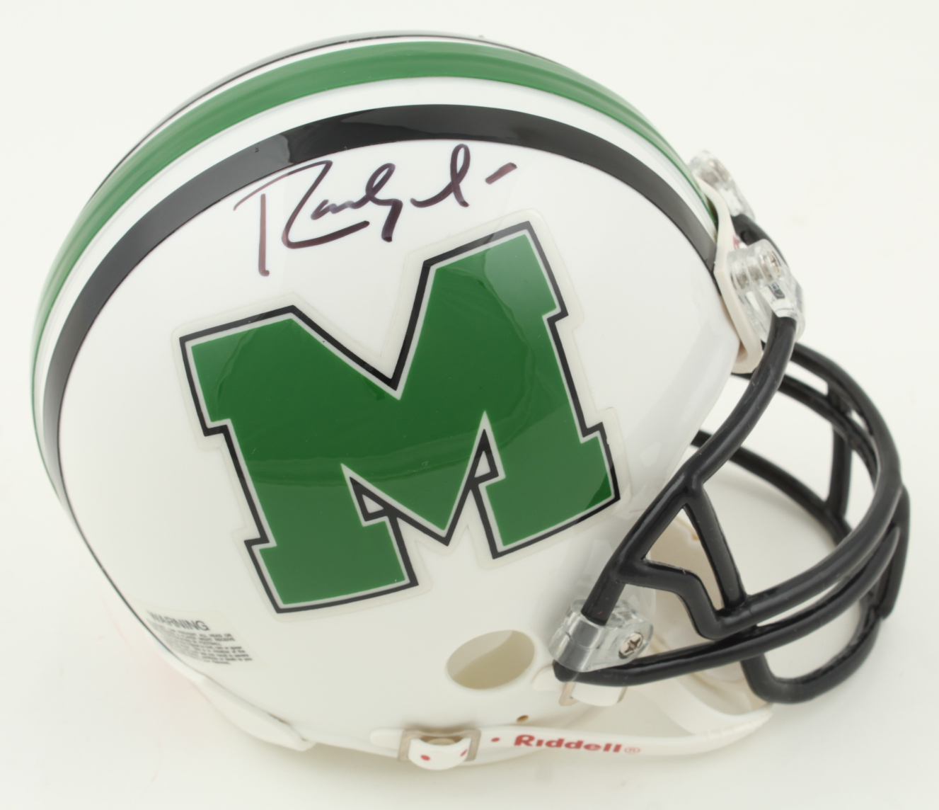 Riddell Marshall Thundering Herd mini helmet. Has been hand-signed by Randy Moss (HOF).