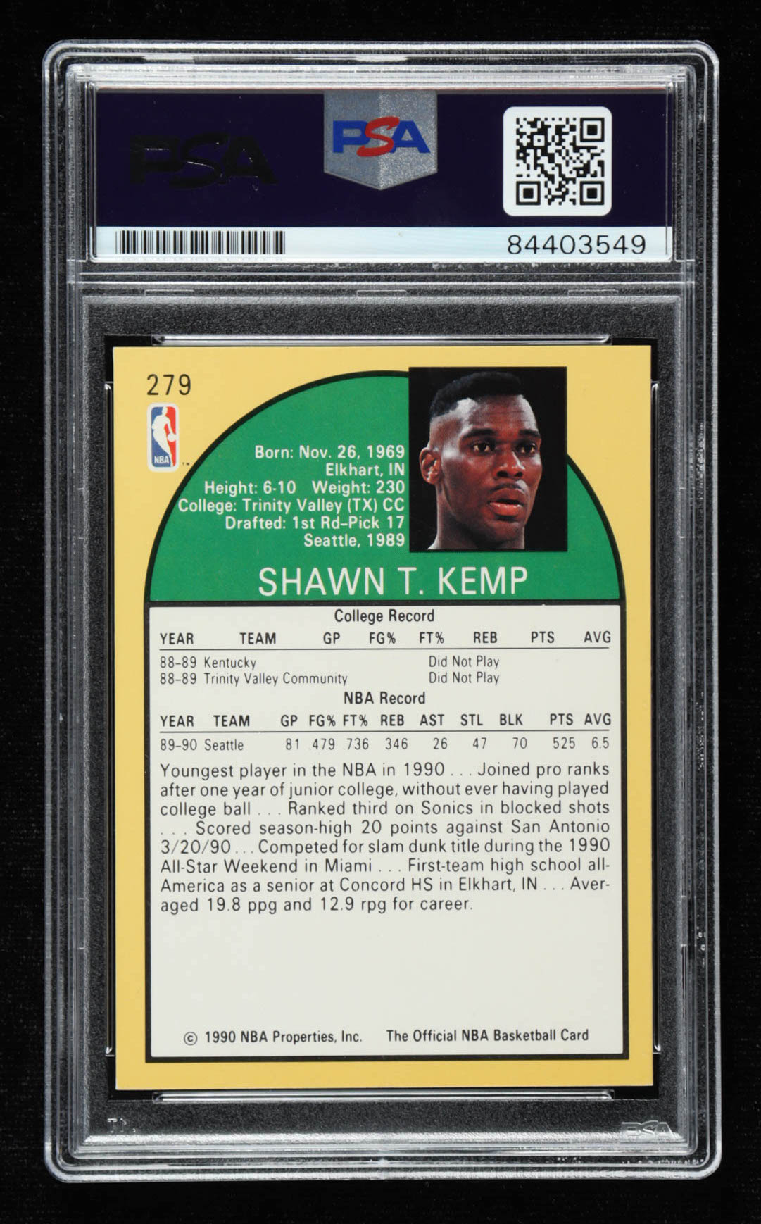 Shawn Kemp Signed 1990-91 Hoops #279 RC (PSA Encapsulated)