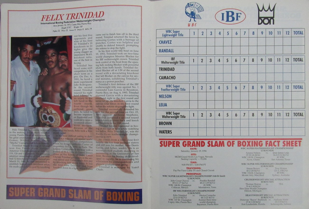 1994 MGM Grand Boxing Program is dated January 29, 1994.