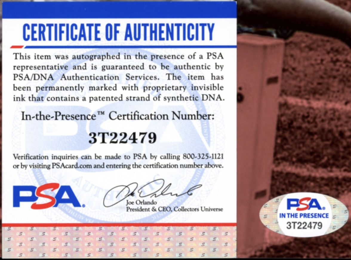 The lot / autograph(s) includes an official PSA/DNA hologram and matching COA for authenticity purposes. The signing of this item was witnessed by PSA.