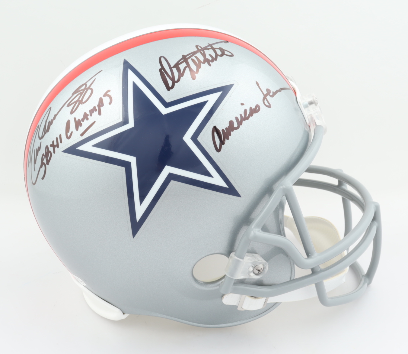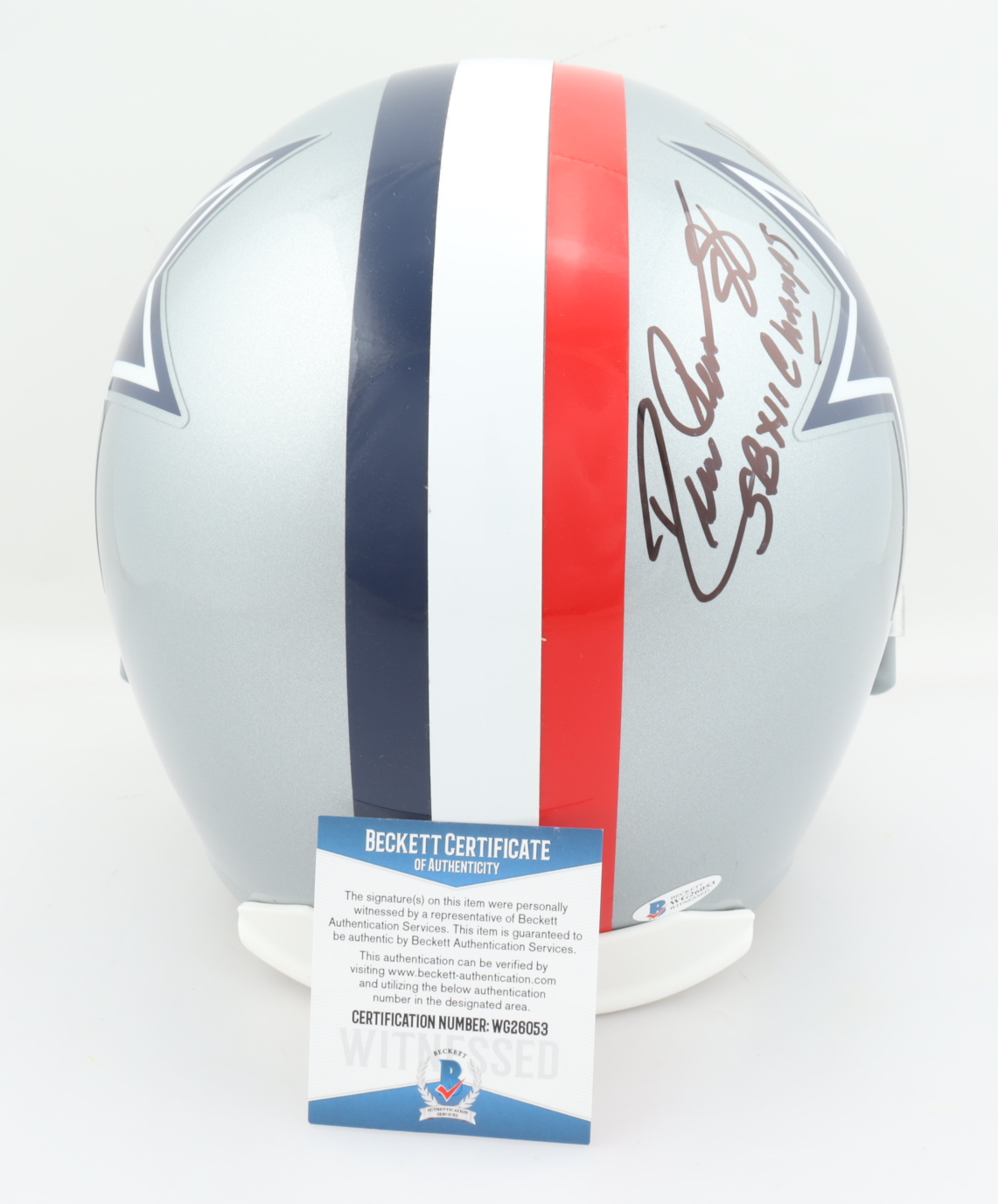Dallas Cowboys full-size replica throwback helmet. Helmet has been hand-signed and inscribed by Drew Pearson (HOF) and Danny White.