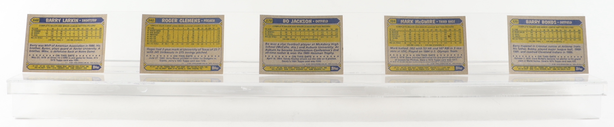 1987 Topps Complete Set of (792) Baseball Cards with #320 Barry Bonds RC, #366 Mark McGwire, #648 Barry Larkin RC, #340 Roger Clemens, #170 Bo Jackson RC
