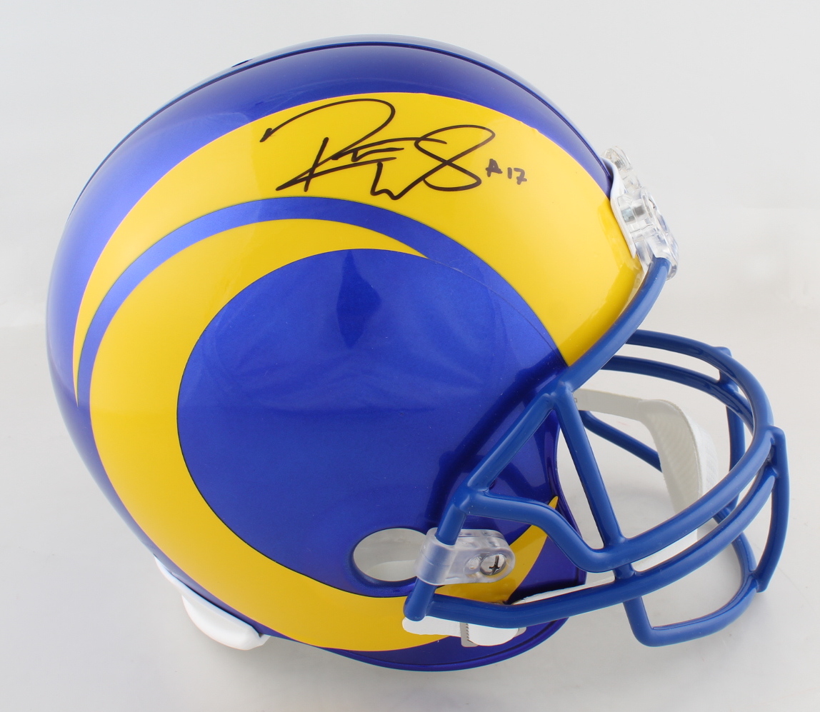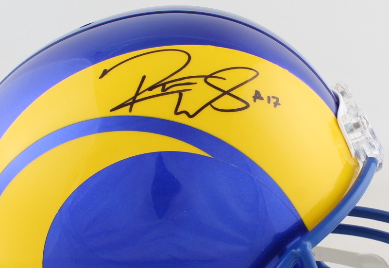 Riddell Los Angeles Rams full-size replica helmet. Has been hand-signed by Robert Woods. Please note, the padding on the back of the helmet has become detached. See photos for more details regarding the condition of the helmet.