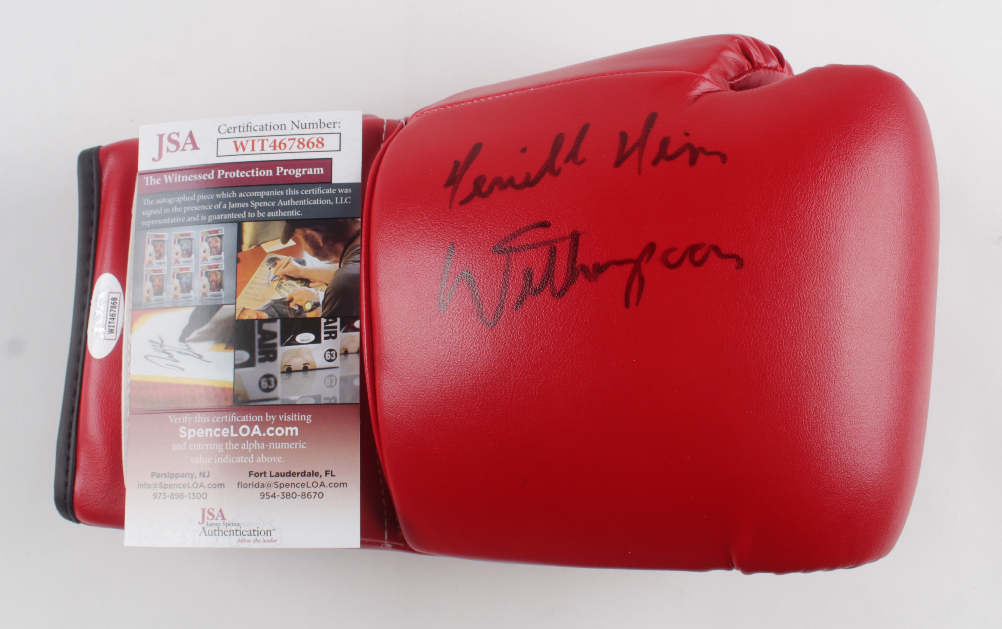 Title boxing glove has been hand-signed by Tim Witherspoon.