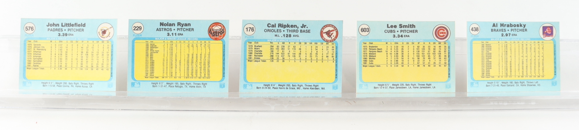1982 Fleer Complete Set of (660) Baseball Cards with John Littlefield #576B, Cal Ripken Jr. #476 RC, Al Hrabosky #438B, Lee Smith #603 RC, Nolan Ryan #229