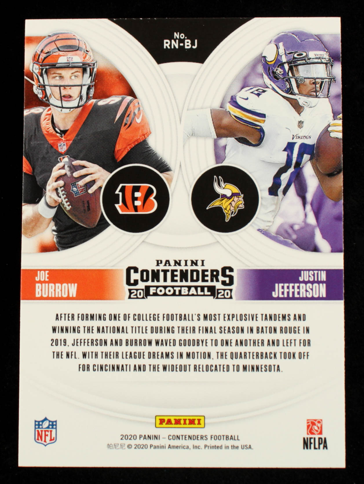 Joe Burrow / Justin Jefferson 2020 Panini Contenders Round Numbers #20