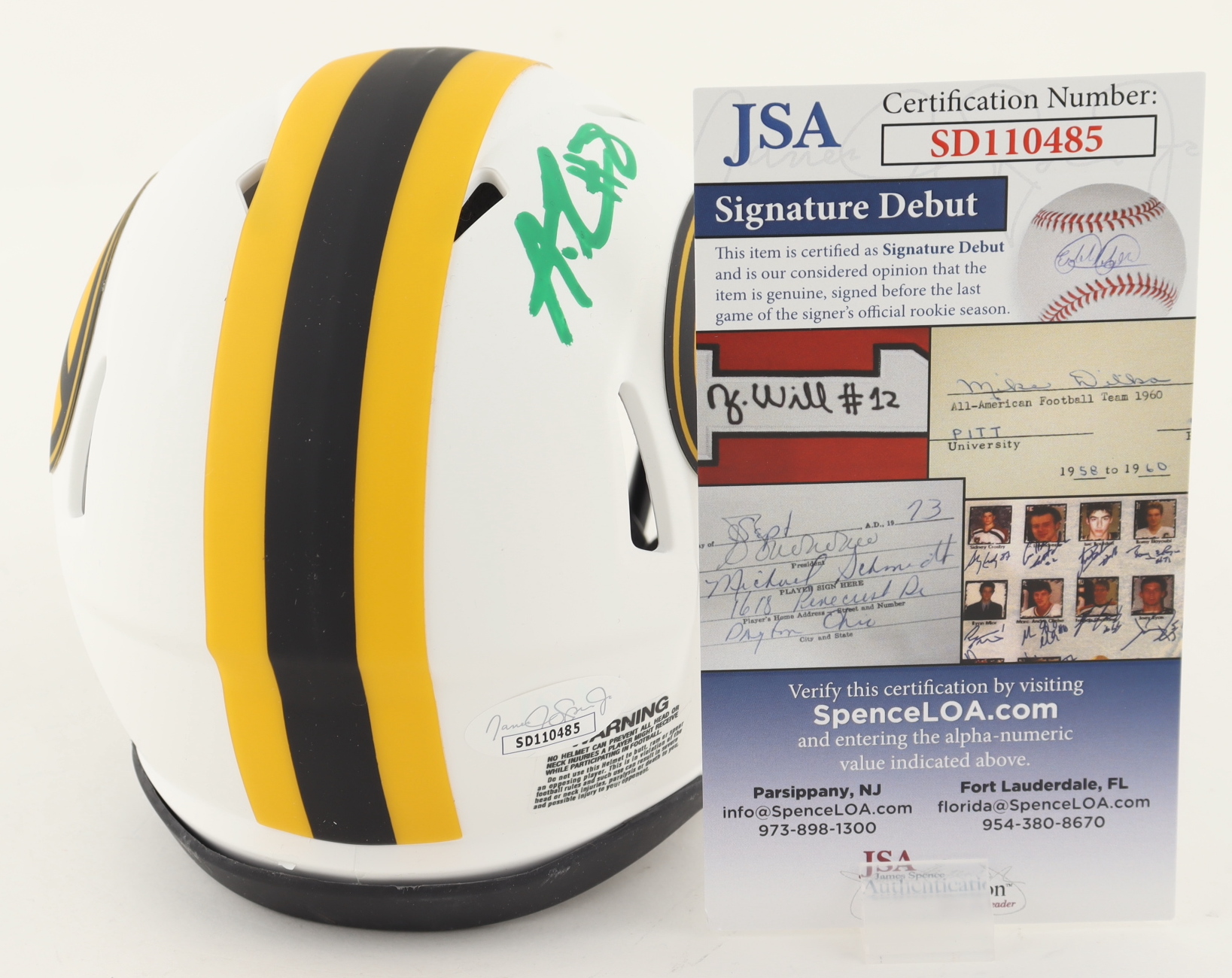 The autograph(s) includes an official James Spence Authentication (JSA) "Signature Debut" hologram and COA. "Signature Debut" is the autographed memorabilia equivalent to a rookie card. The JSA definition of a "Signature Debut" is as follows: "Any item that is autographed and received by JSA prior to the last game of the signer's official rookie season.