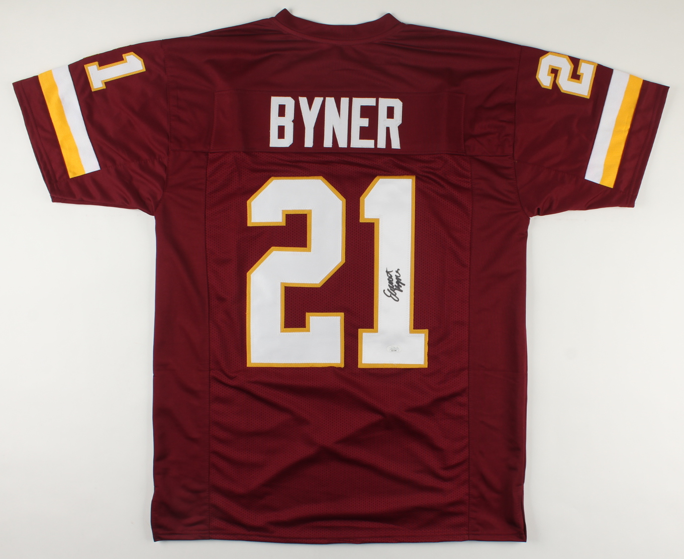 Custom on-field style jersey. Everything sewn on, size XL. Hand-signed by Earnest Byner.