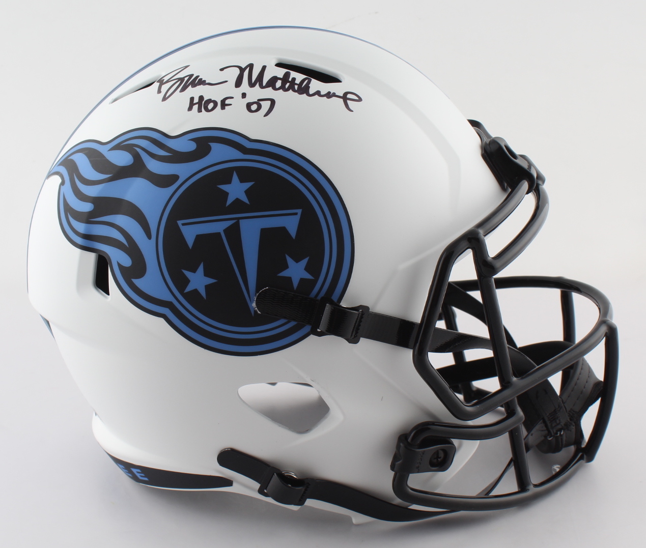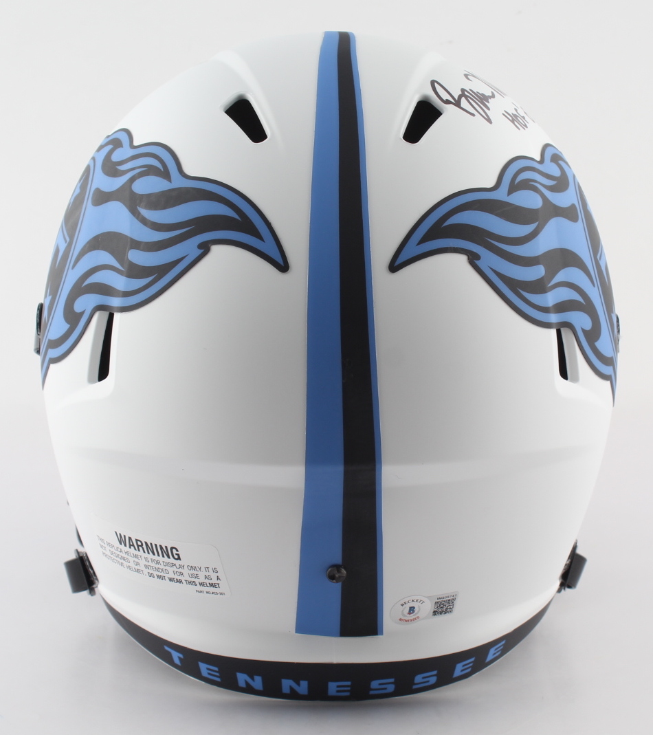 Riddell Tennessee Titans full-size Lunar Eclipse Alternate speed replica Helmet has been hand-signed and inscribed by Bruce Matthews (HOF).