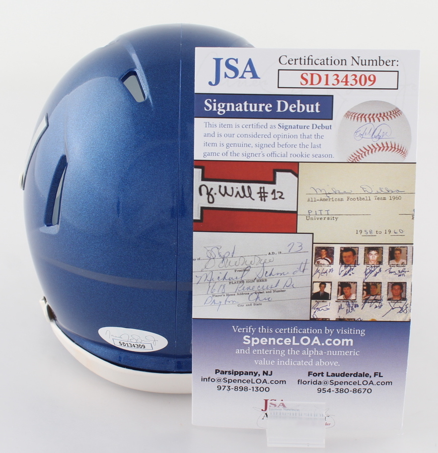 The autograph(s) includes an official James Spence Authentication (JSA) "Signature Debut" hologram and COA. "Signature Debut" is the autographed memorabilia equivalent to a rookie card. The JSA definition of a "Signature Debut" is as follows: "Any item that is autographed and received by JSA prior to the last game of the signer's official rookie season.