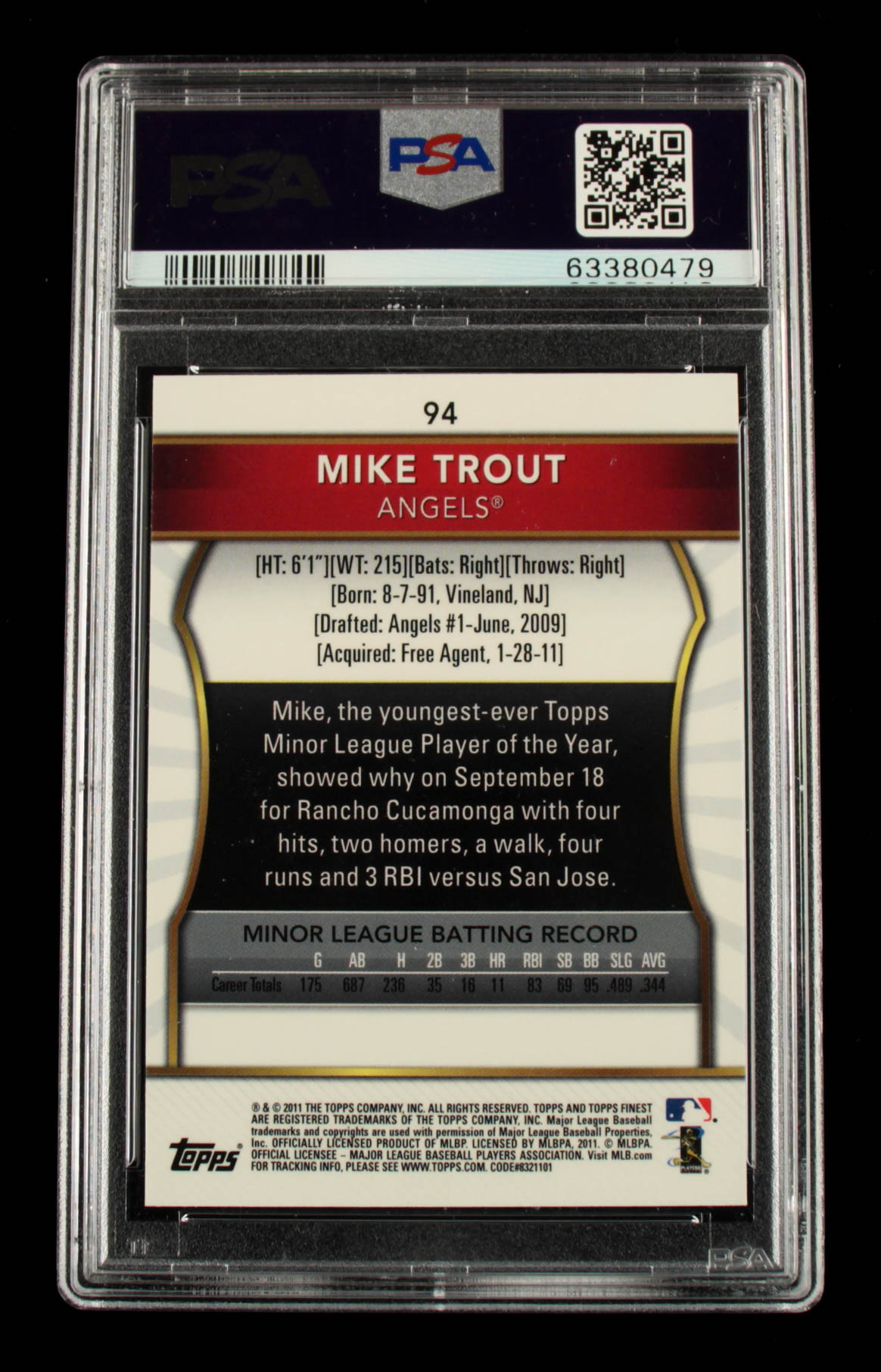 Mike Trout 2011 Topps Finest #94 RC (PSA 9)