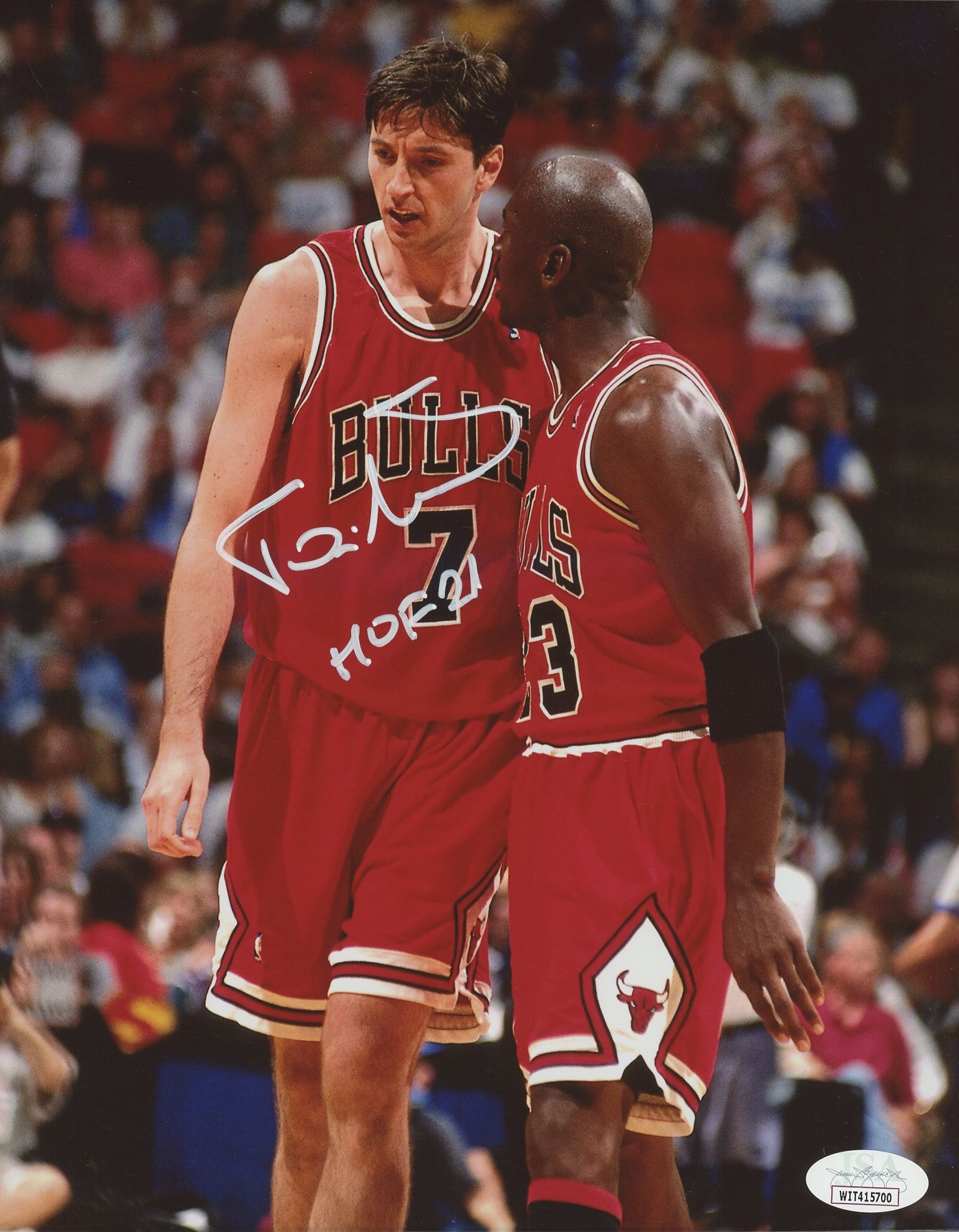 Photo measures 8" x 10" in size and has been hand-signed and inscribed by Toni Kukoc (Chicago Bulls, HOF).