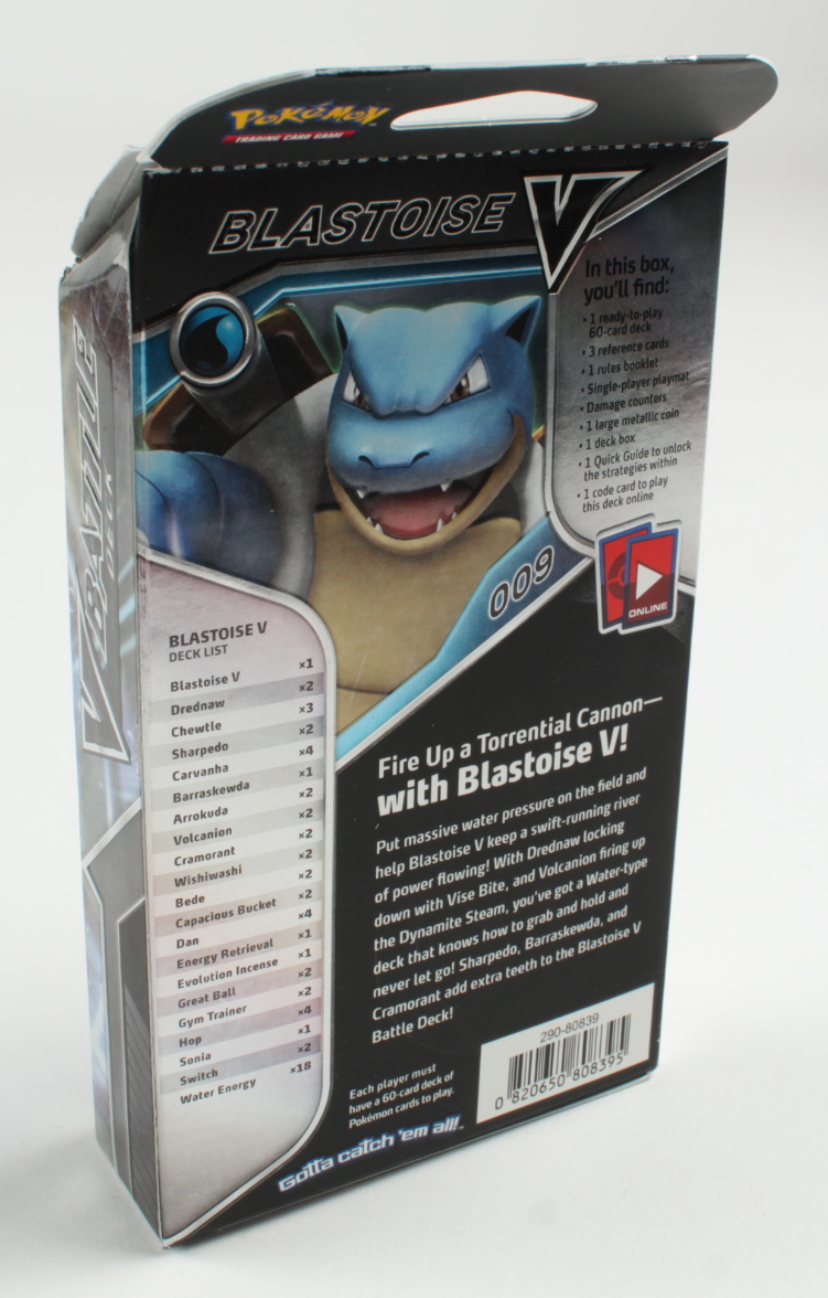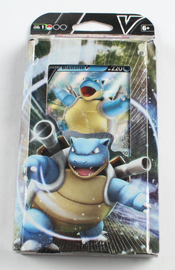 The Pokémon TCG: V Battle Blastoise Theme Deck provides 60 cards, battle accessories, and a rules booklet to get Trainers ready to play, plus a Blastoise foil promo card!