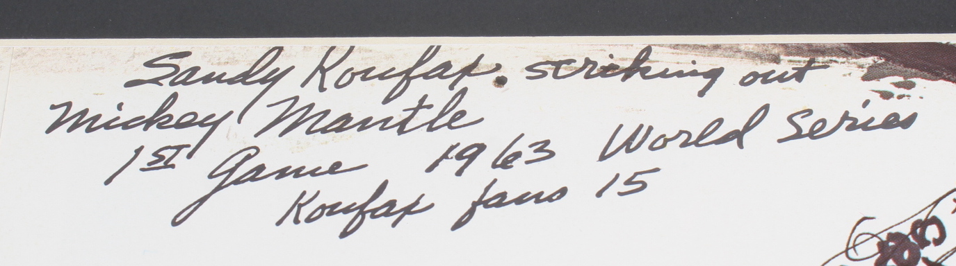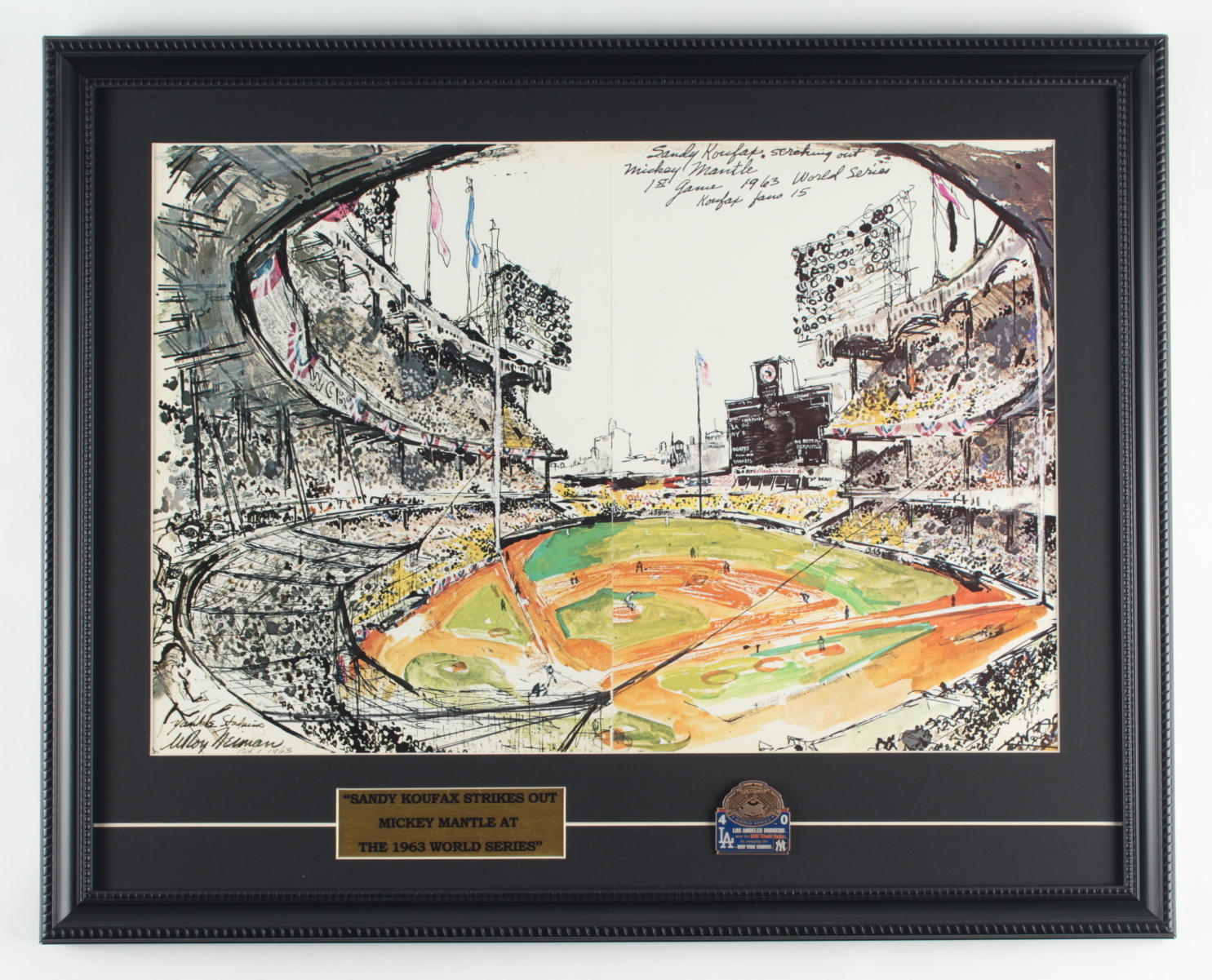 LeRoy Neiman "Sandy Koufax Strikes Out Mickey Mantle At The 1963 World Series" 18.5x23 Custom Framed Print Display with 1963 World Series Pin
