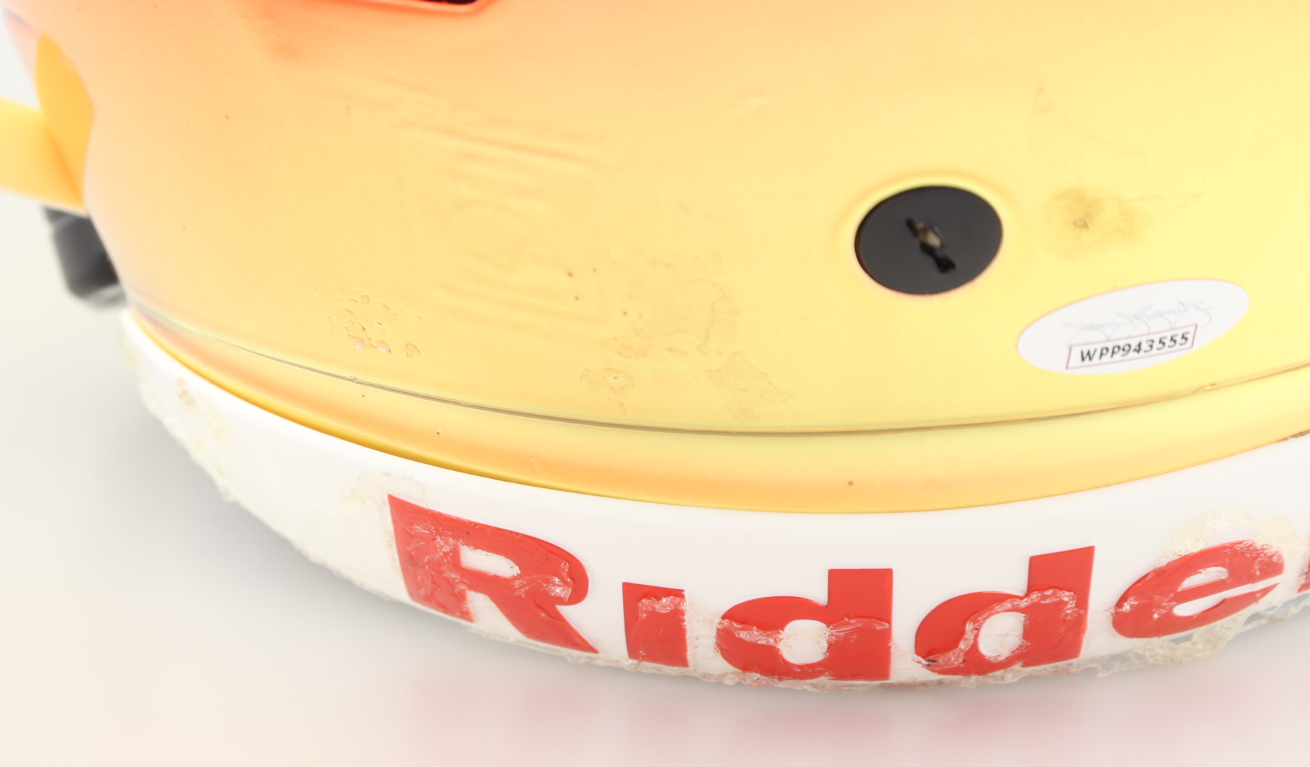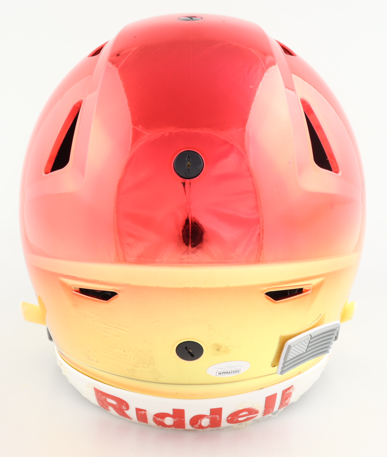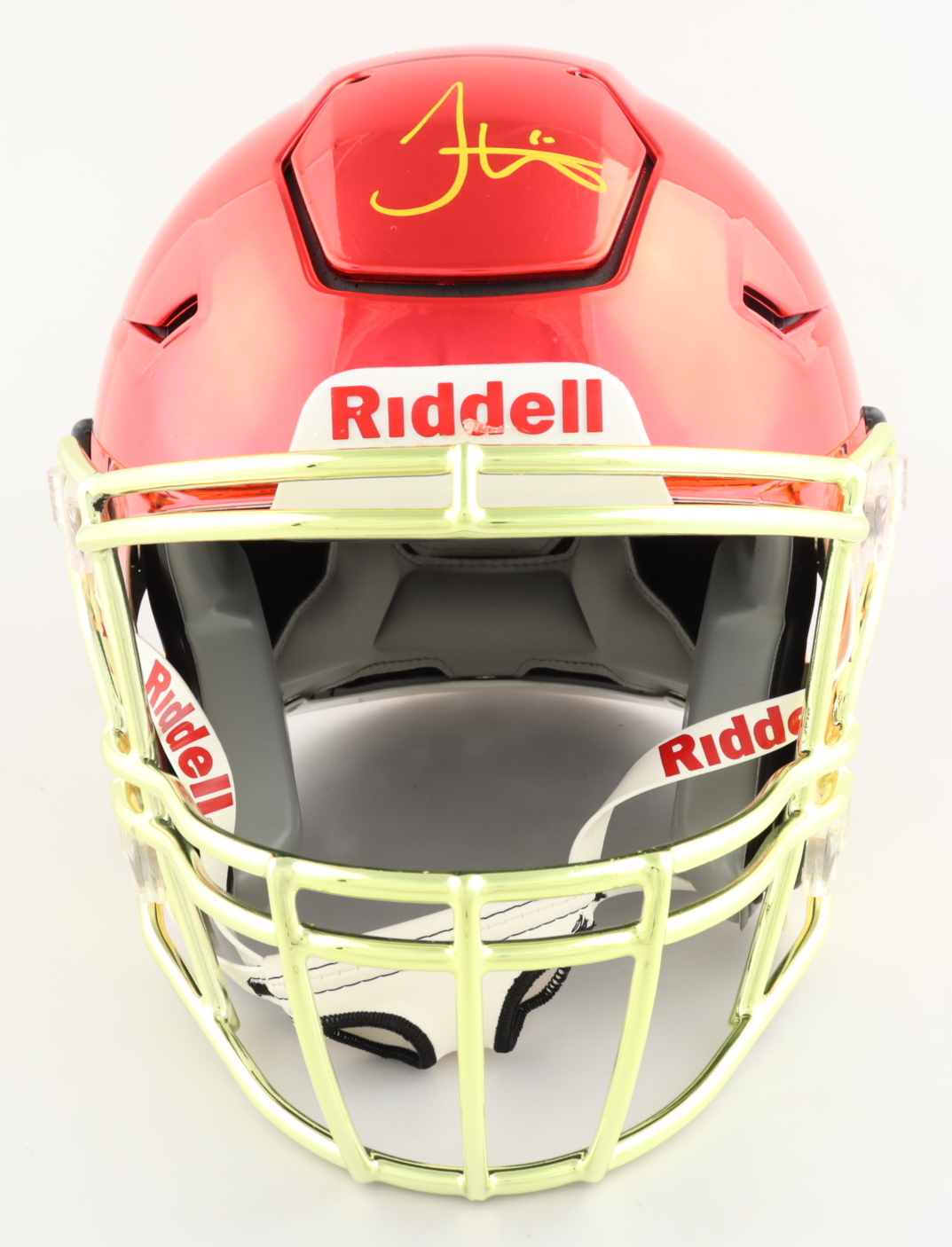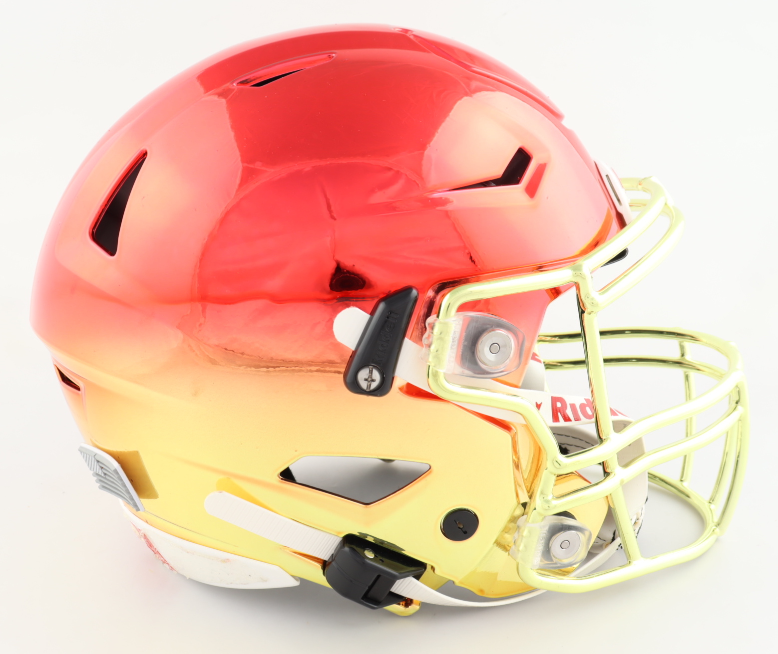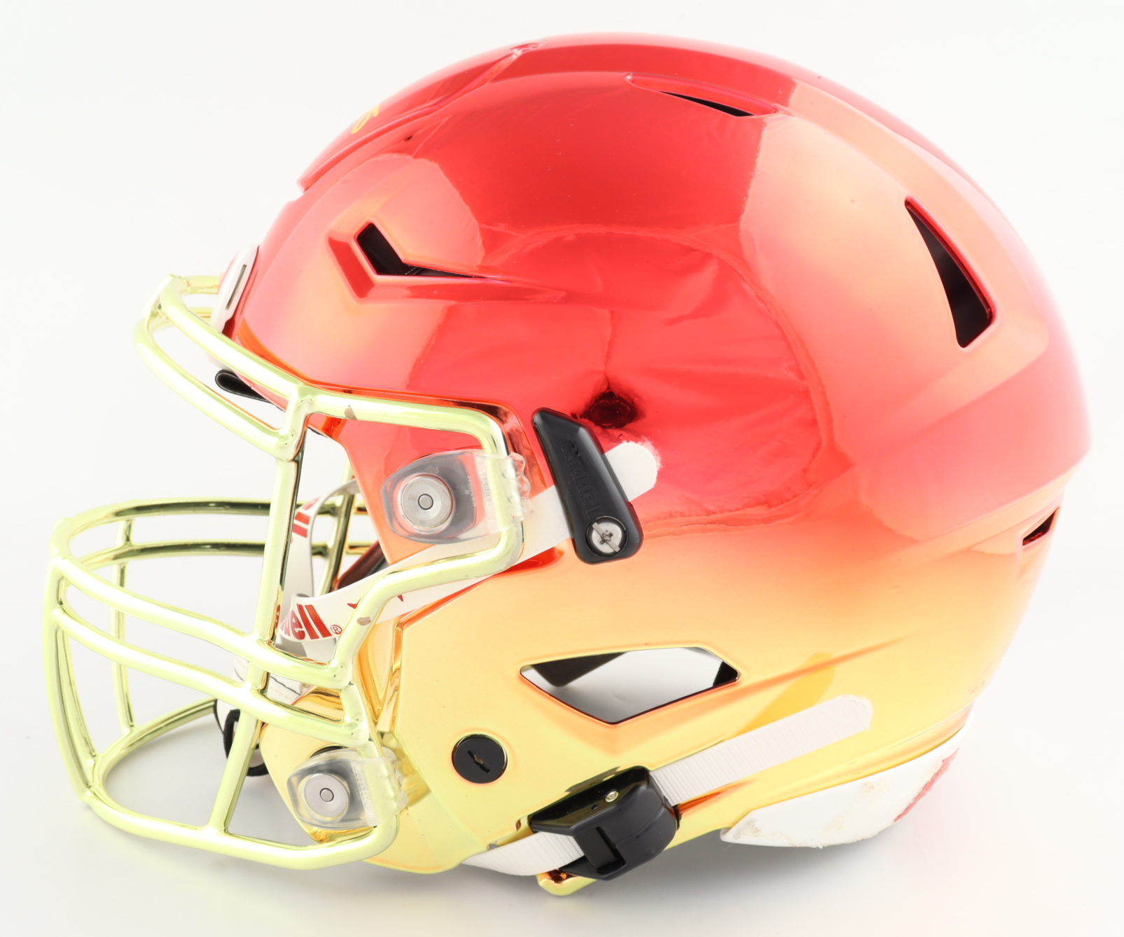 Riddell Kansas City Chiefs Full-Size Authentic On-Field Chrome SpeedFlex Helmet. Has been hand-signed by Tyreek Hill. Please note, the helmet has dry glue all on the back and shows imperfection.