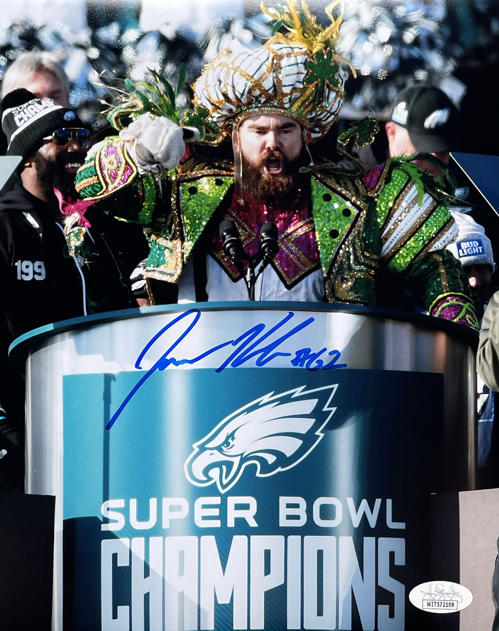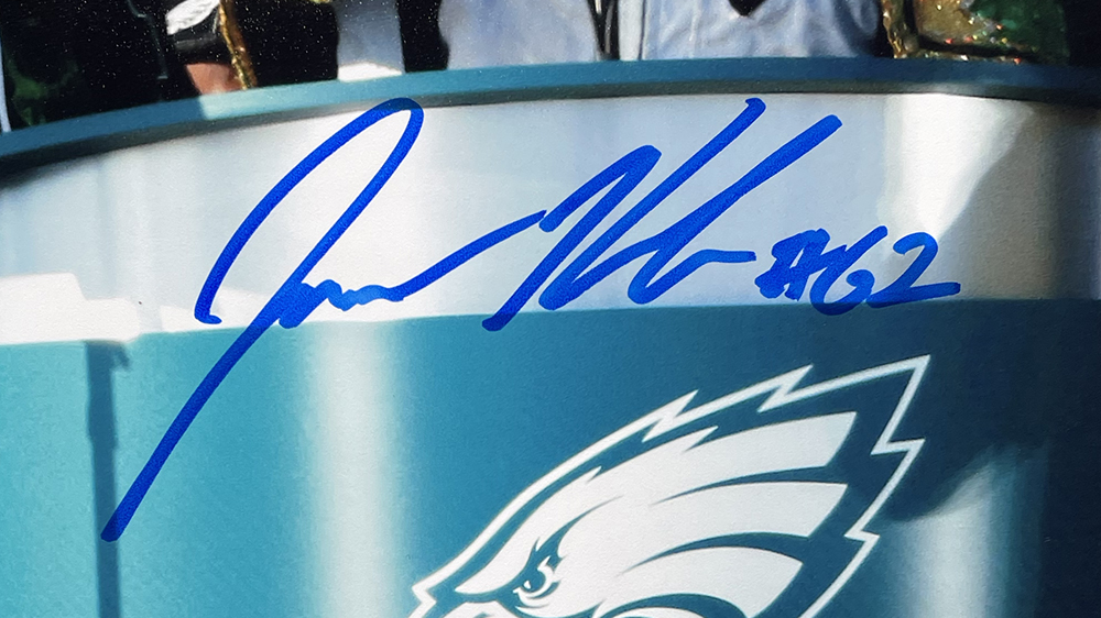 Photo measures 8" x 10" in size and has been hand-signed by Jason Kelce (Philadelphia Eagles).