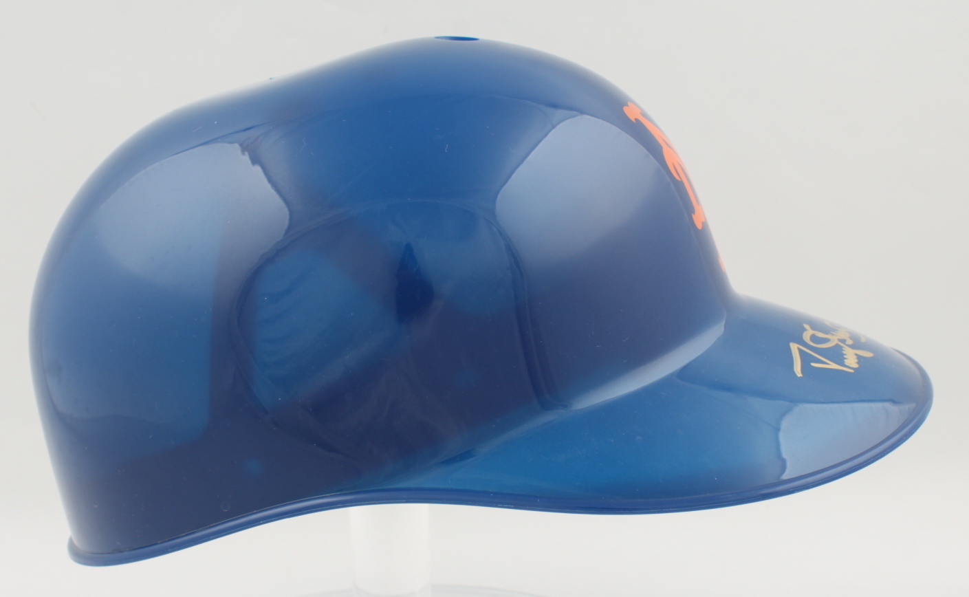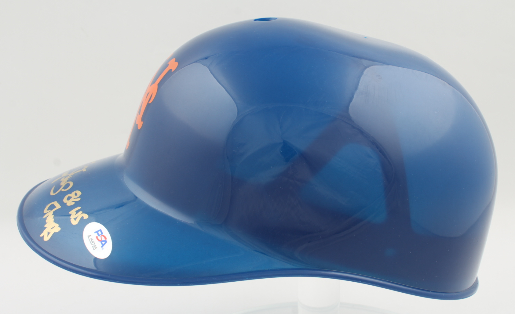 New York Mets full-size replica plastic souvenir helmet. Hand-signed and inscribed by Darryl Strawberry. Please note there are some signs of scuffing around the signature. Please see images for details regarding condition.
