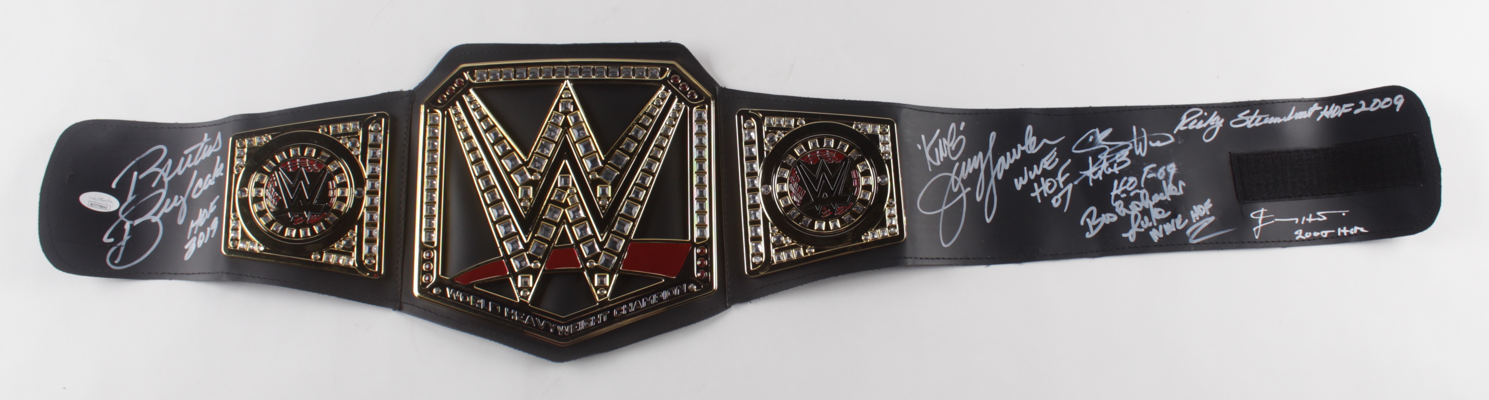 WWE World Heavyweight Champion Wrestling Belt Signed by (6) with Jerry Lawler, Jimmy Hart, Ricky Steamboat, Koko B. Ware with Multiple Inscriptions (JSA COA)