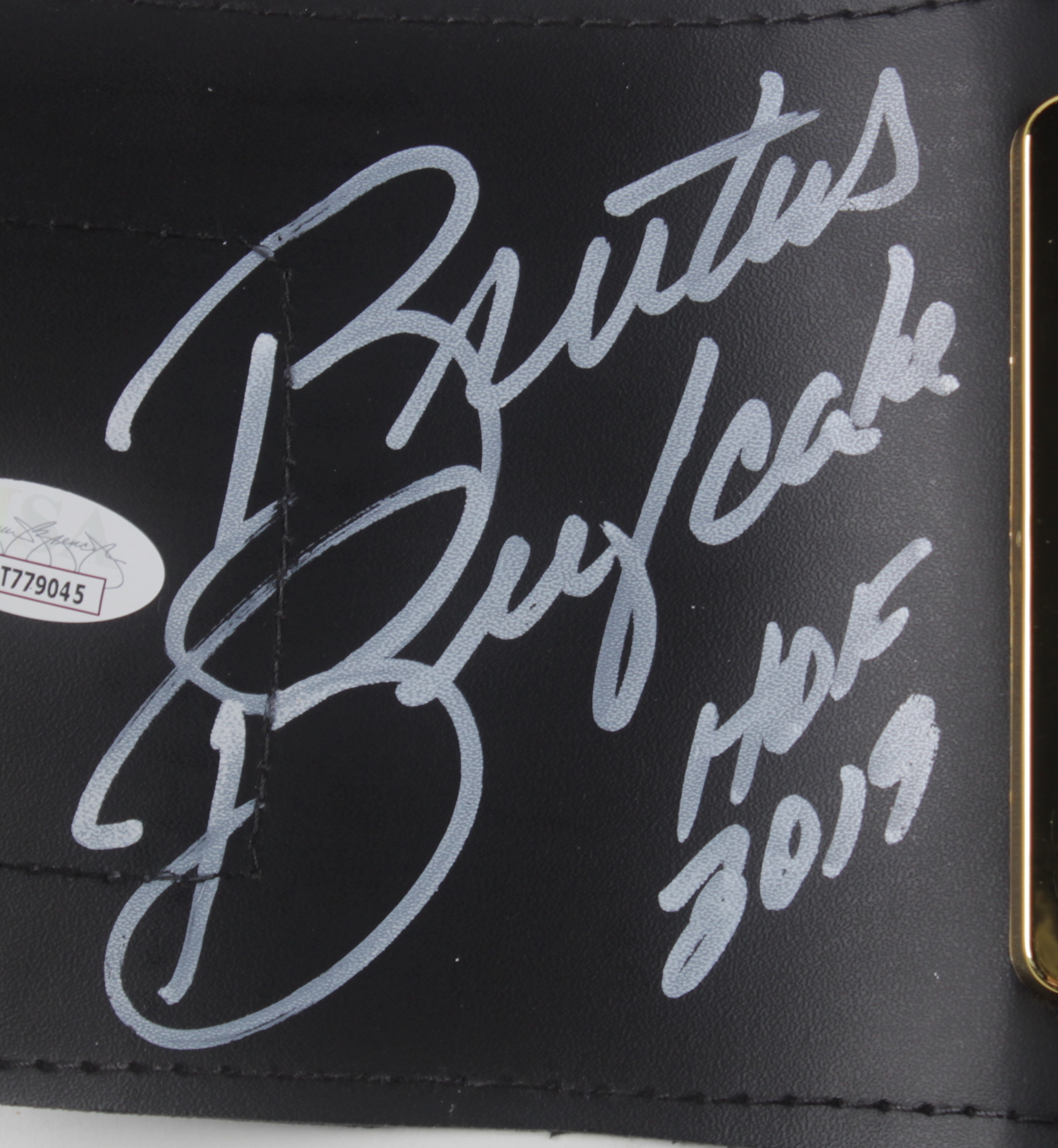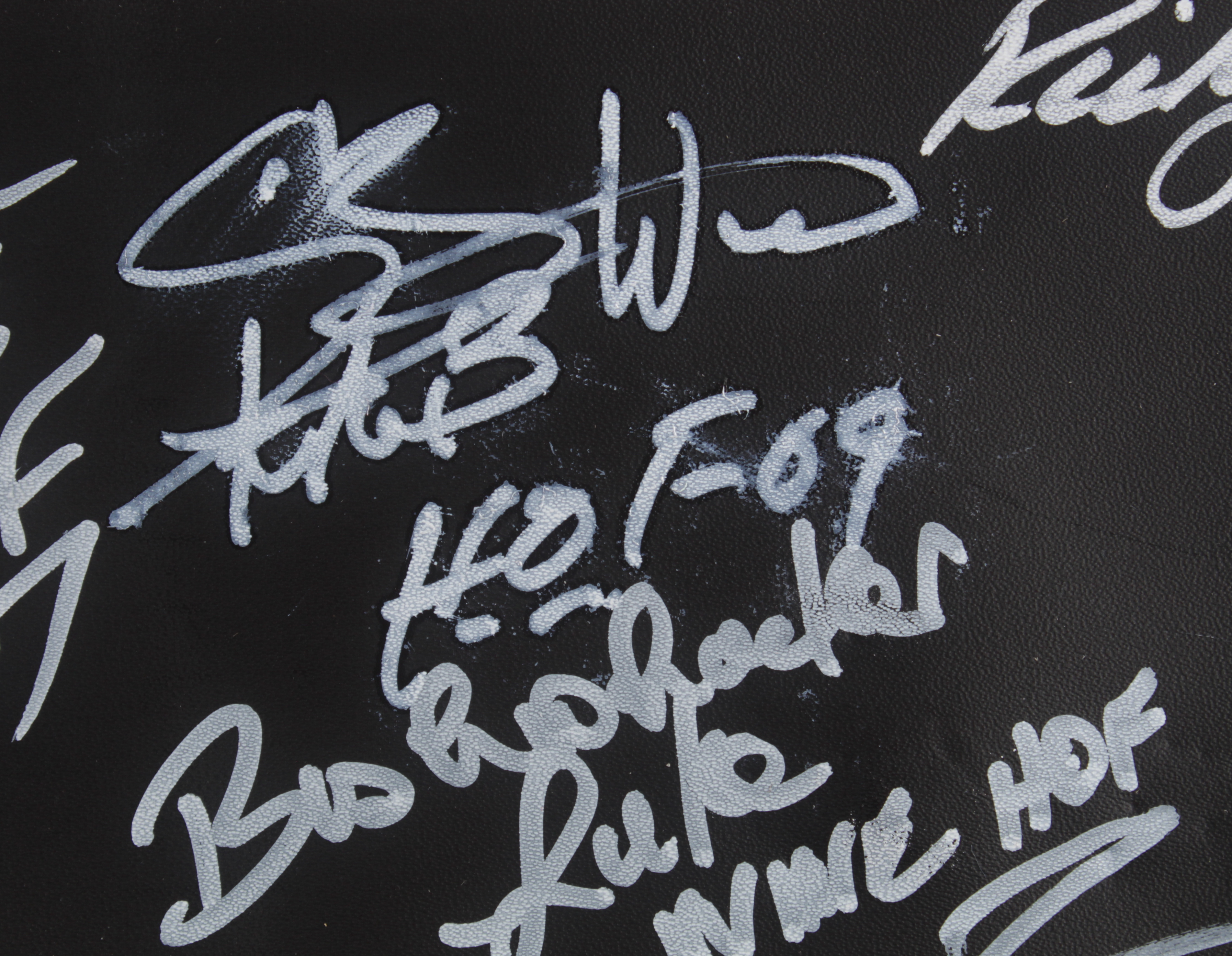 WWE World Heavyweight Champion plastic toy replica belt measures approximately 38" in length and has been hand-signed and inscribed by (6) including Jerry Lawler, Ricky Steamboat, Koko B. Ware, Brutus Beefcake, Luke Williams and Jimmy Hart.