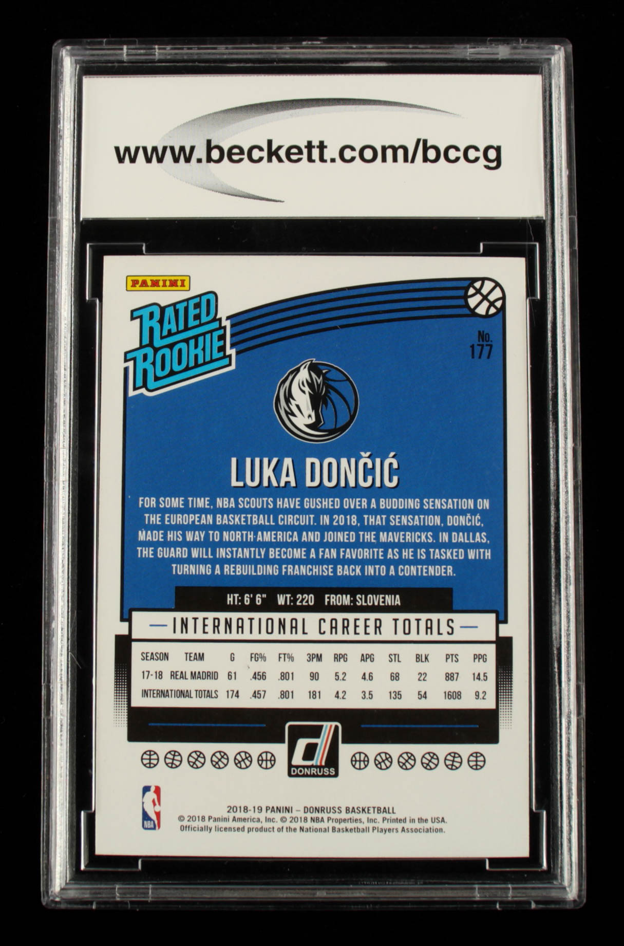 Luka Doncic 2018-19 Donruss #177 RR RC (BCCG 10)
