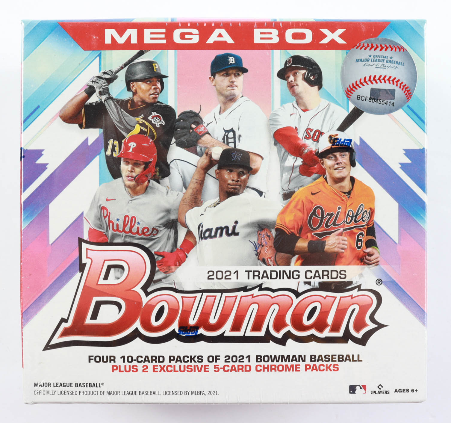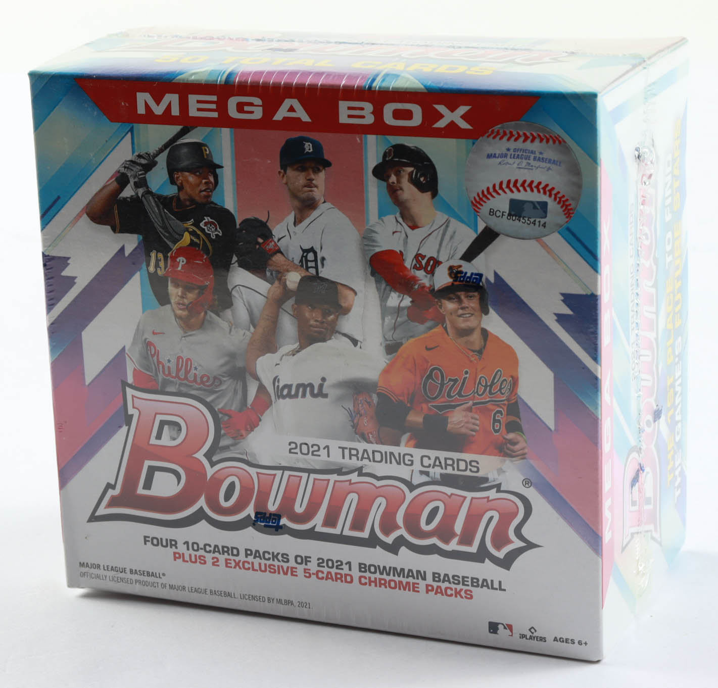 Each box has Four 10-Card Bowman packs and Two of the EXCLUSIVE Mega Box Chrome Packs with Five Cards each!