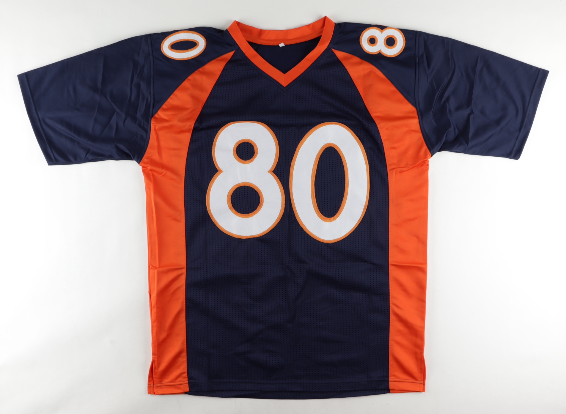 Custom on-field style jersey. Everything is sewn on, size XL. Has been hand-signed and inscribed by Rod Smith.