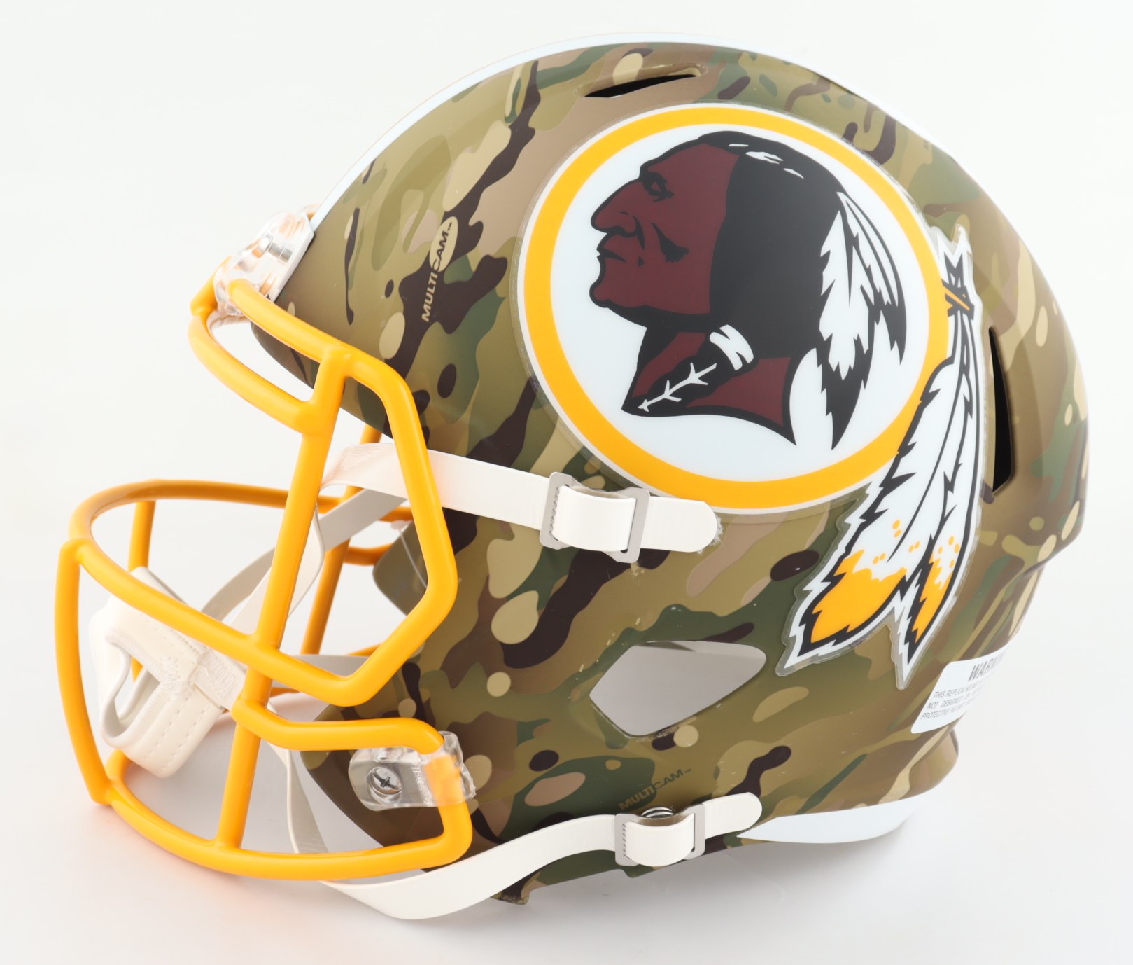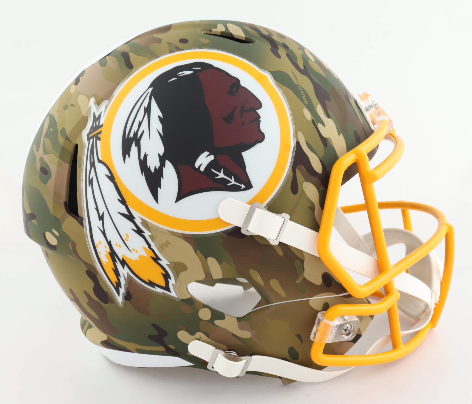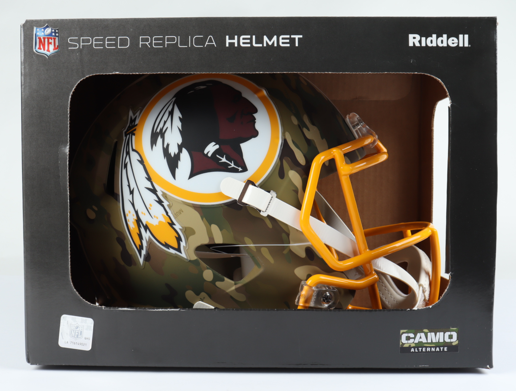 Riddell Washington Redskins full-size replica Camo Alternate speed helmet. This helmet is ready to be autographed by your favorite player or displayed as part of your collection. Includes the original packaging as shown.