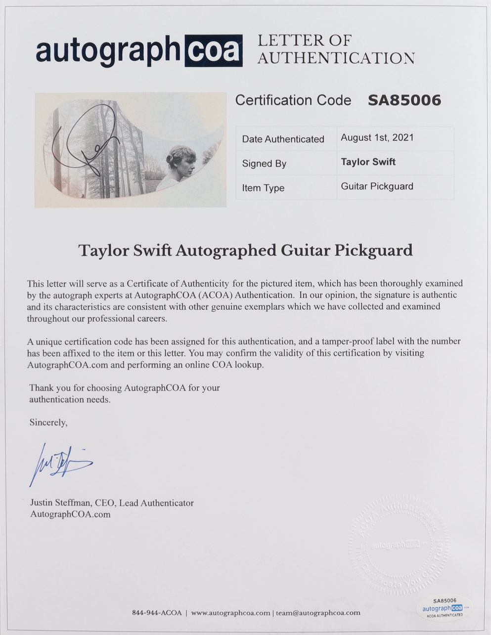 Authentication: AutographCOA LOA