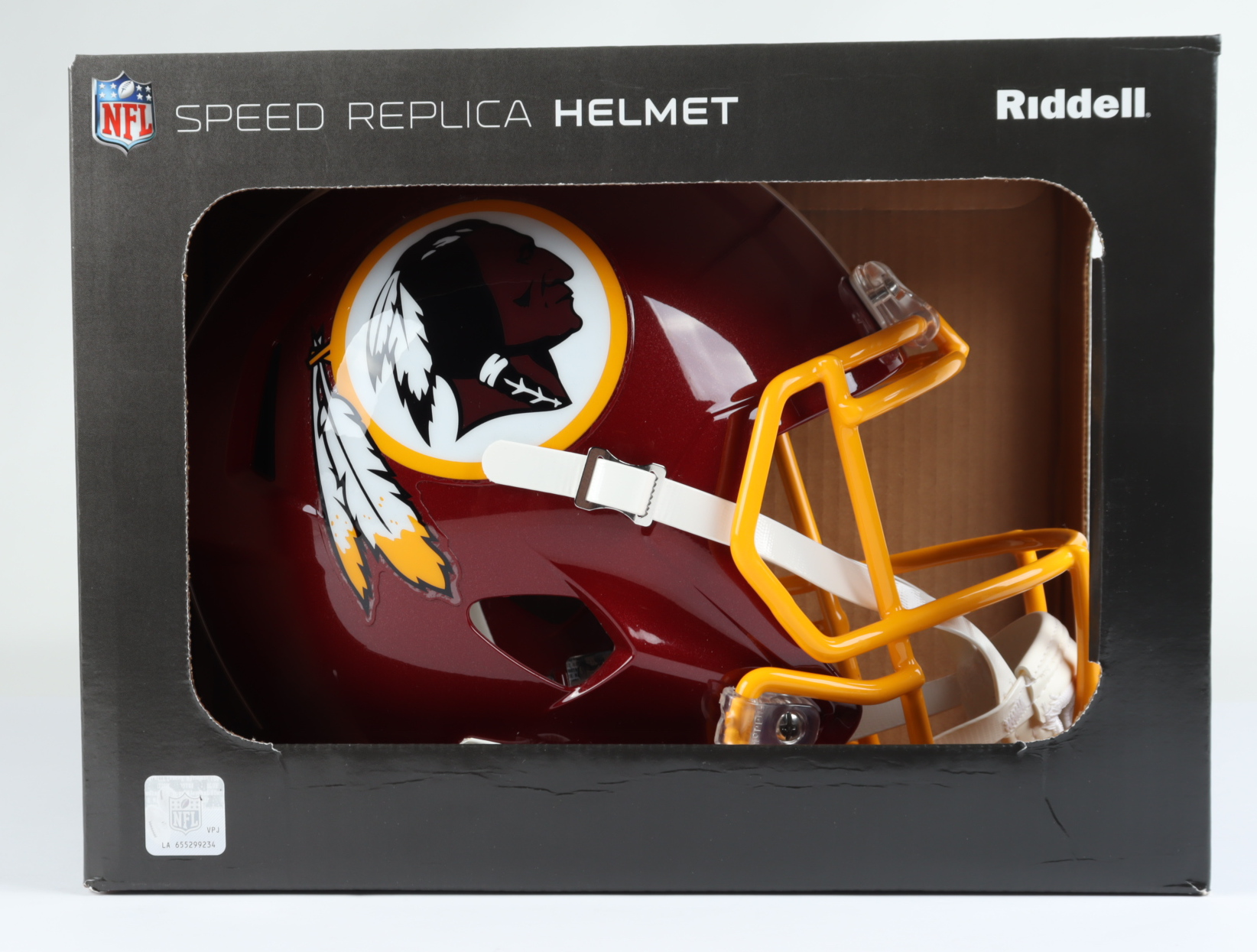 Riddell Washington Redskins full-size replica speed helmet. This helmet is ready to be autographed by your favorite player or displayed as part of your collection. Includes the original packaging as shown.