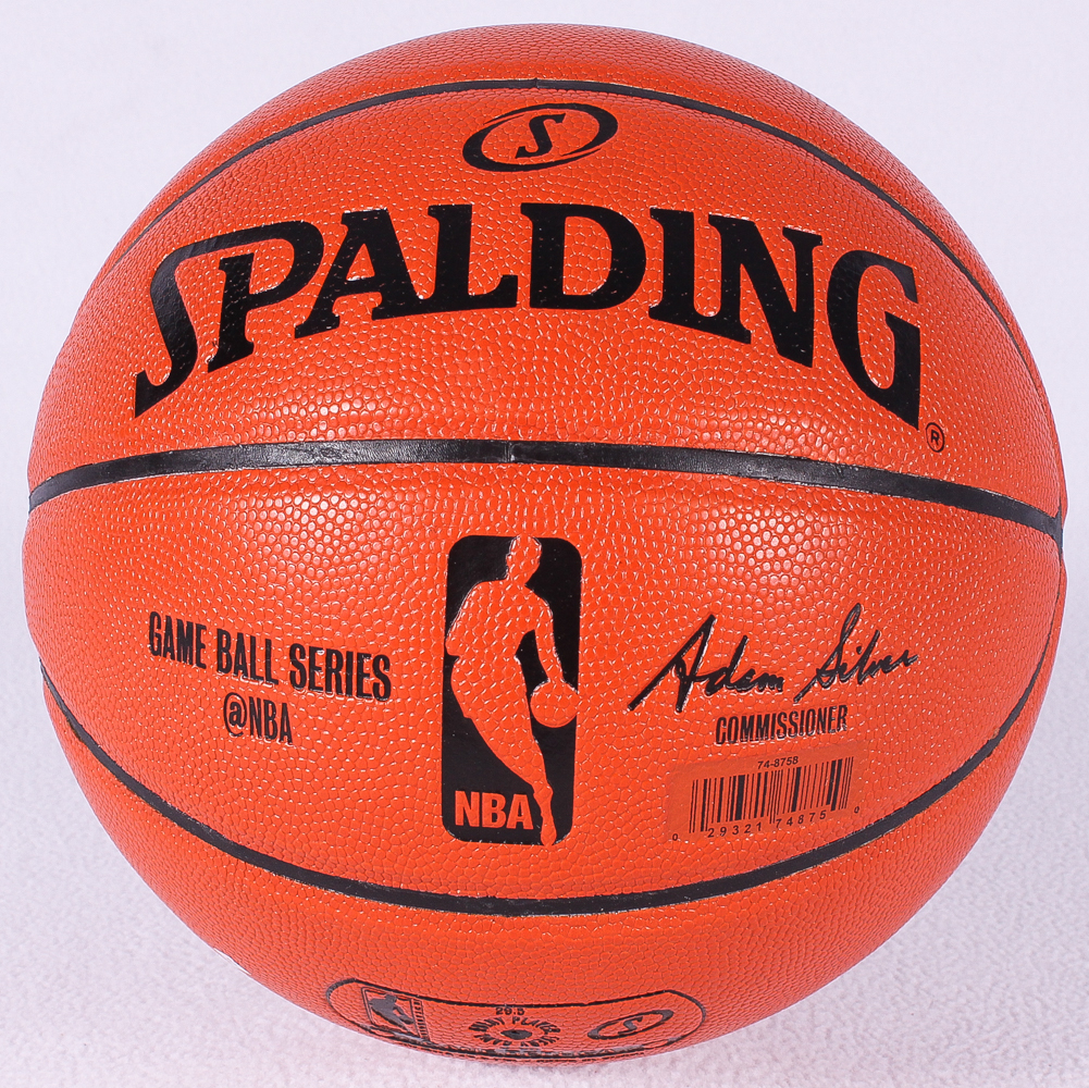 Spalding NBA Game Ball Series Basketball. Hand-signed in silver paint pen by Kyrie Irving (Cavaliers).