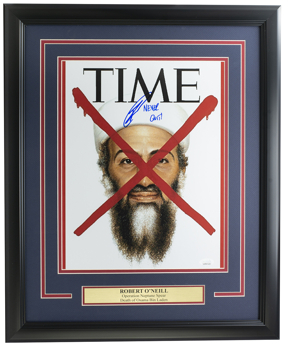 Custom framed photo measures 16" x 20" in size and has been hand-signed and inscribed by Robert J. O'Neill.