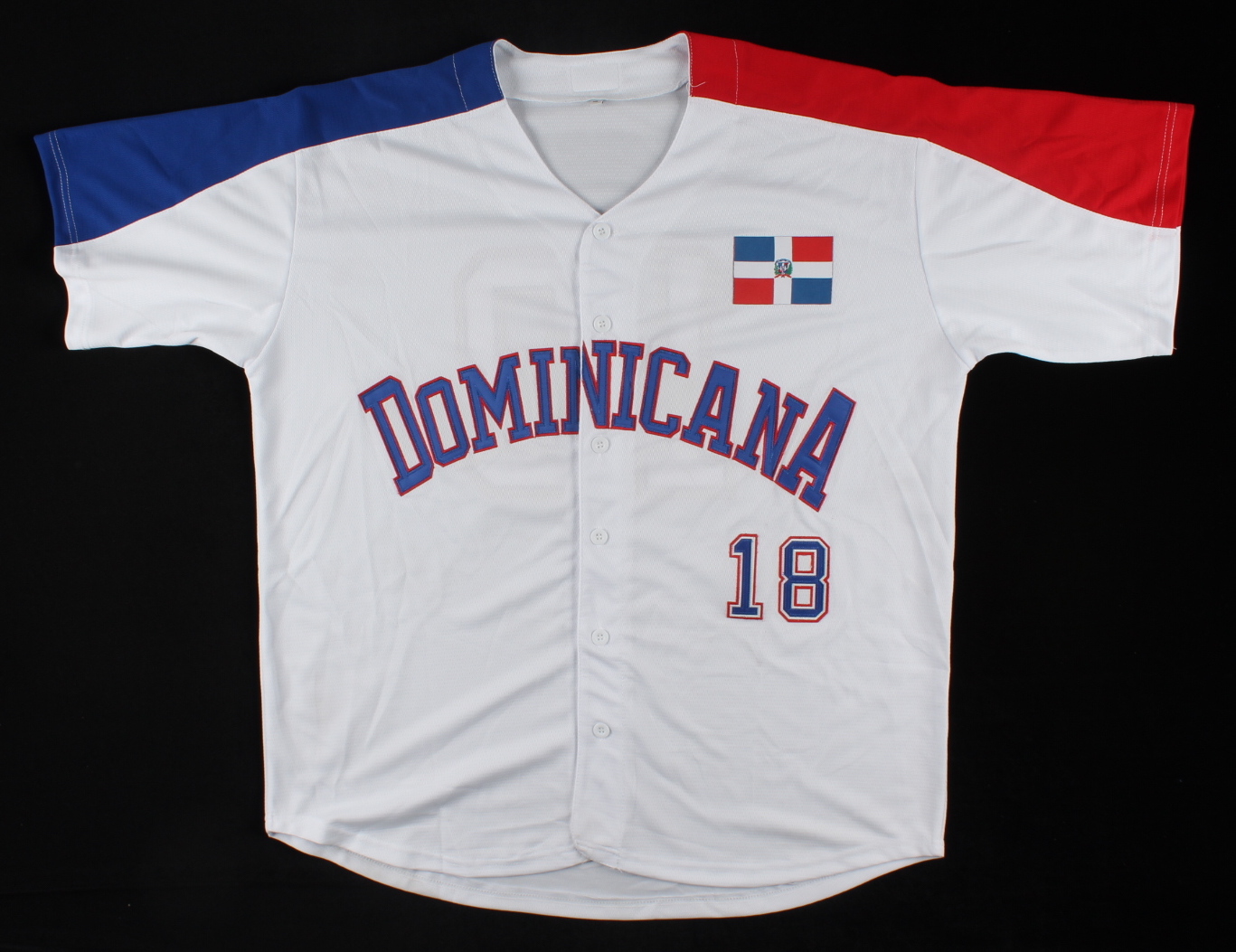 On-field style jersey. Everything sewn on, size XL. Hand-signed by Julio Rodriguez. Please note, there is staining on the back of the jersey, towards the bottom.