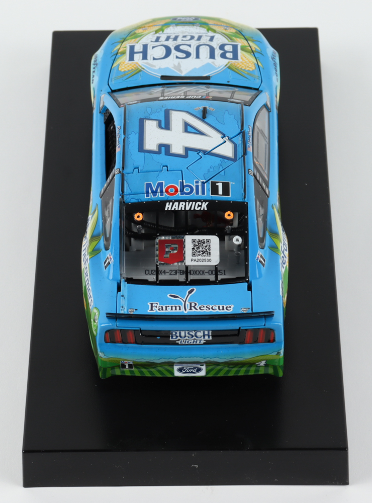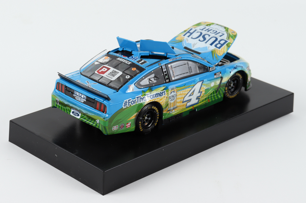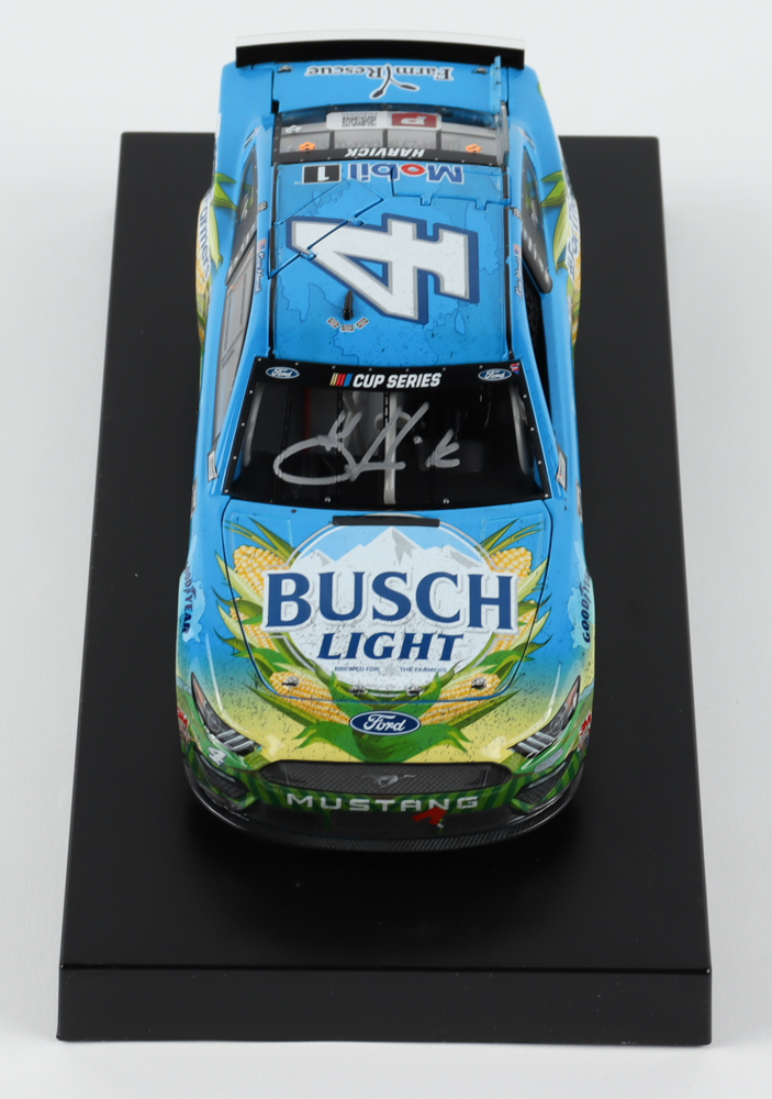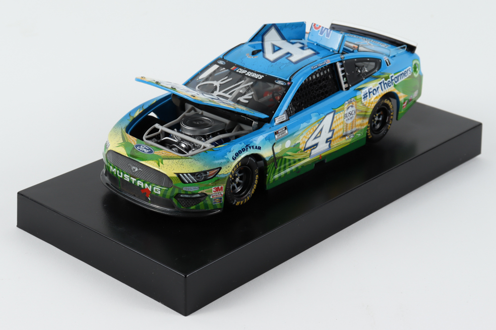 Premium die-cast car hand-signed on the windshield by Kevin Harvick. The car is limited edition to just 948 produced and includes the original packaging.