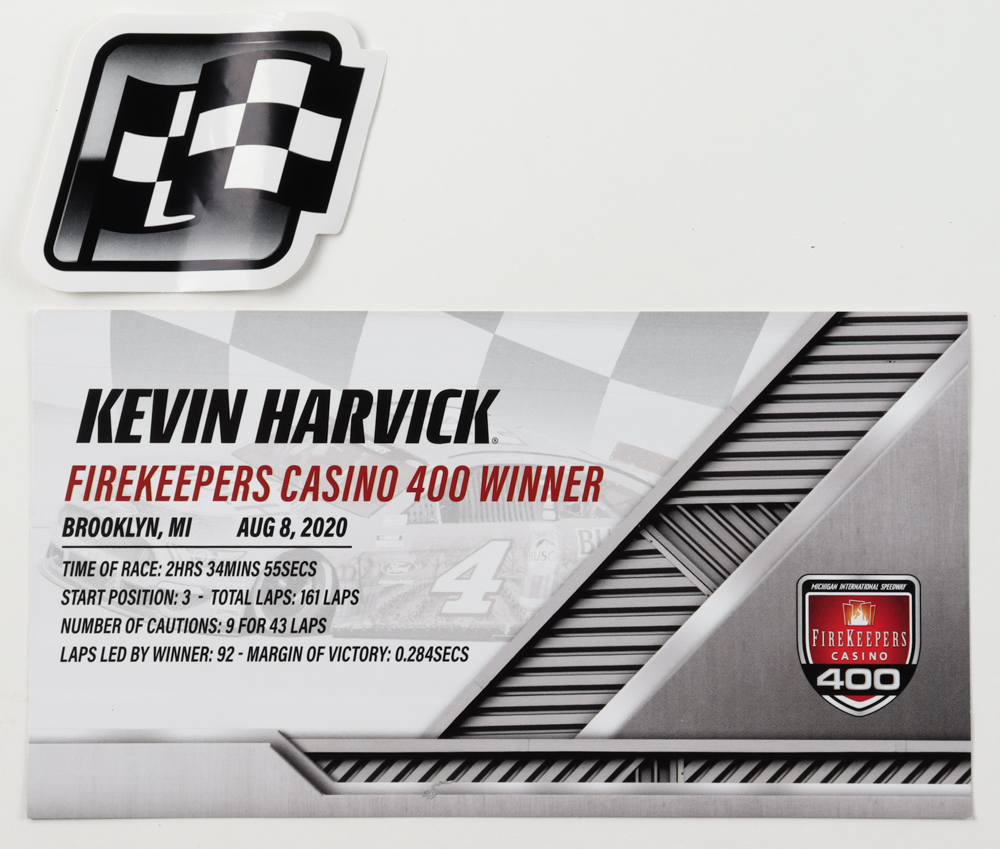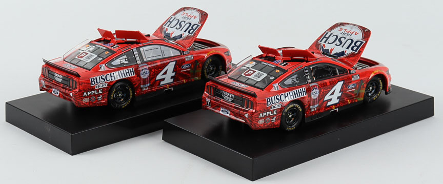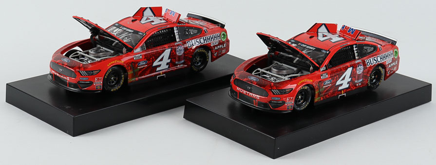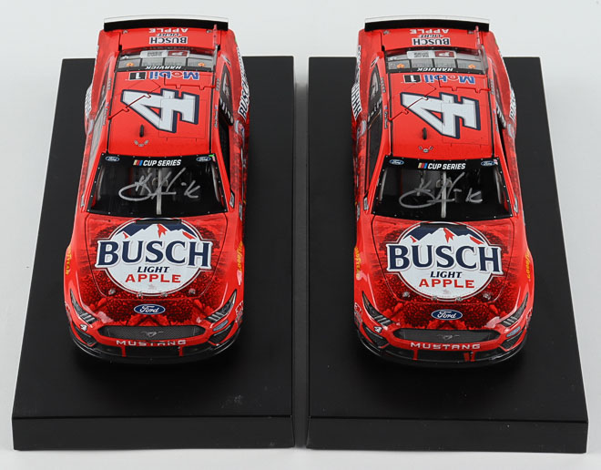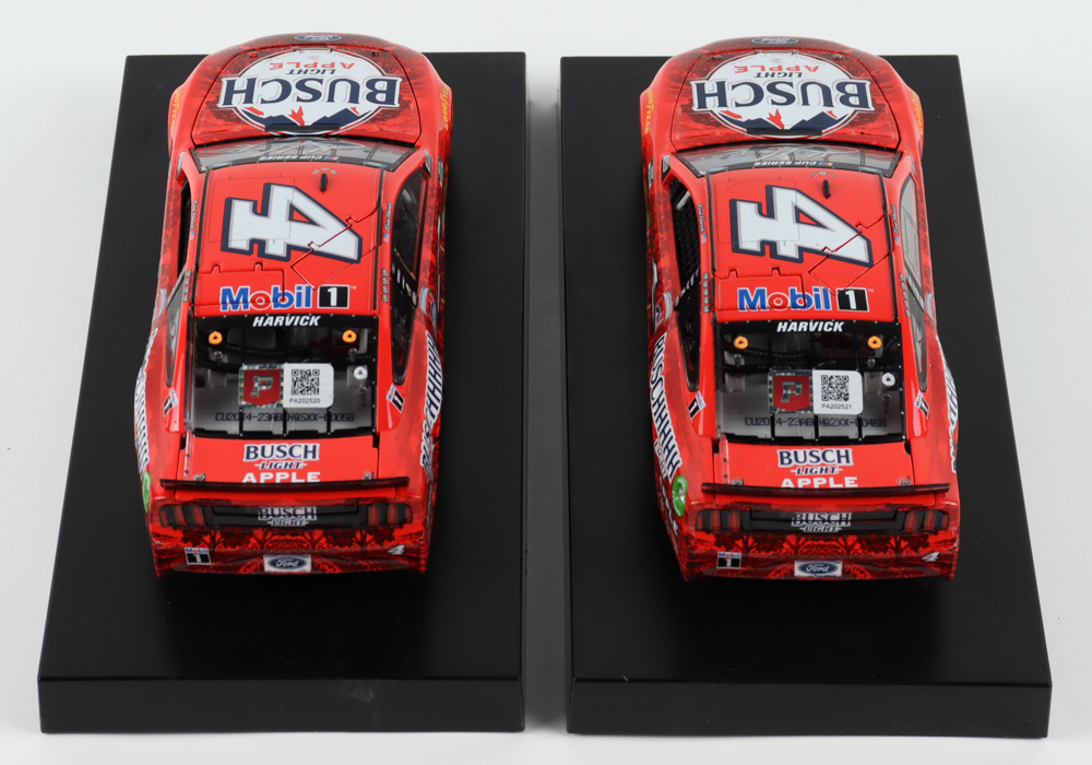Set includes (2) premium die-cast cars each hand-signed on the windshield by Kevin Harvick. The set is limited edition to just 888 produced and includes the original packaging.